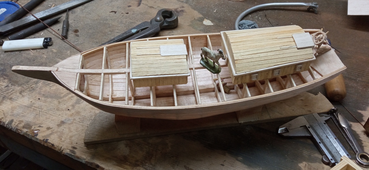 Teď budu dělat drobnosti k lodi. Kajuty, sudy, pumpu, člun, kormidlo a nějaký polokladky už mám hotový. Tak bych se asi pustil do stojanu kormidla a zkusil vyrobit další kladky. Než vymyslím strojovnu. S tím si vůbec nevím rady, natož to udělat tak, aby to fungovalo. To mě trápí ze všeho nejvíc.