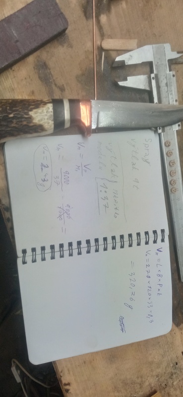S tou kozou to byla jen taková bláznivinka😁. Jo, pavouček je moje práce. Hmotnost stávajícího trupu stále nevím. Do civilizace od nás ze samoty se dostanu až zítra, protože mě čeká kontrola v nemocnici (před rokem jsem skoro umřel, tak jsem stále pod dohledem), tak koupím baterku do digitální váhy, abych zvážil trup, baterku a příjímač. Předchozí trup skončil v kamnech, měl jen pár planěk a překližkovou kostru. Jen kostra měla 55 gramů, což mě bylo jasný, že tudy cesta nepovede. Dneska se k lodi ani nedostanu. Kovu nože na jarní výstavu nožů v Brně