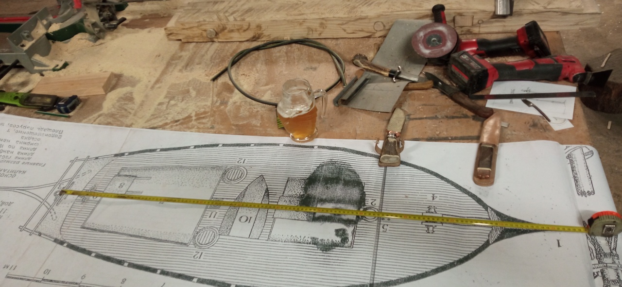 Člun vážil 2 gramy. Ale nelíbil se mi, tak jsem ho hodil do výhně. Původní kýl, žebra a část planěk měli 80 gramů, což bylo nemyslitelný, aby to fungovalo