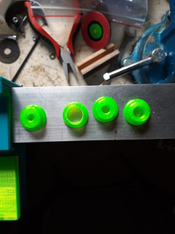Všetky diely čo vidieť na fotografiách (tyrkysová a zelená farba)sú vytlačené na 3D tlačiarni z materiálu PETG. Prípadným záujemcom zašlem emailom potrebné súbory (dwg, dxf, stl ) na 3D tlač. Nemám spracovaný dielenský výkres tak ako má vyzerať. Bez 3D tlačiarne by som nemal tento stroj, pretože jeho výroba by bola dosť náročná na dielenské vybavenie a spracovanie.