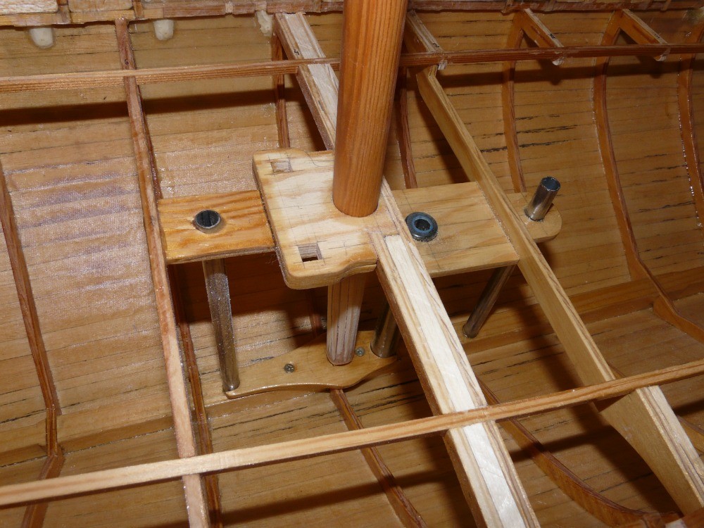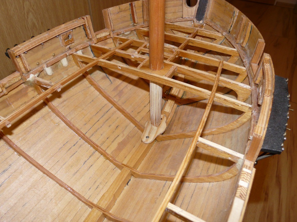 Základ paluby jsem na radu zkušenějších zhotovil z laminátové desky tl. 0,8 mm. (obr. 10, 11, 12, 13) Taky jsem předělal stěžňové botky a paty stěžňů. Jsou hranaté, takže by se mi stěžně neměly otáčet. (obr. 14, 15, 16, 17)