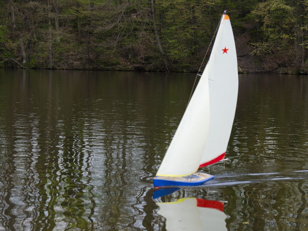 Přidávám ještě jednou parametry: LWL 880mm, plachty 0,405m2 a výtlak 4,400 kg, model postavený v měřítku 1:7,5