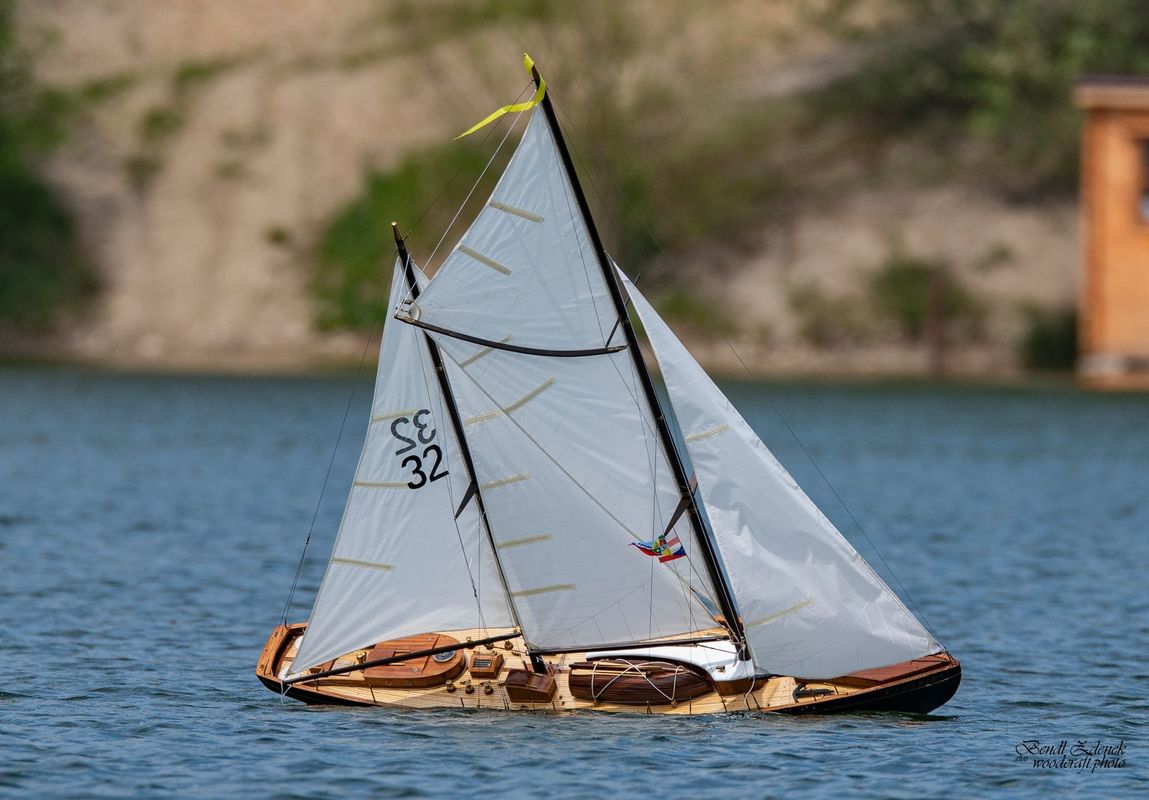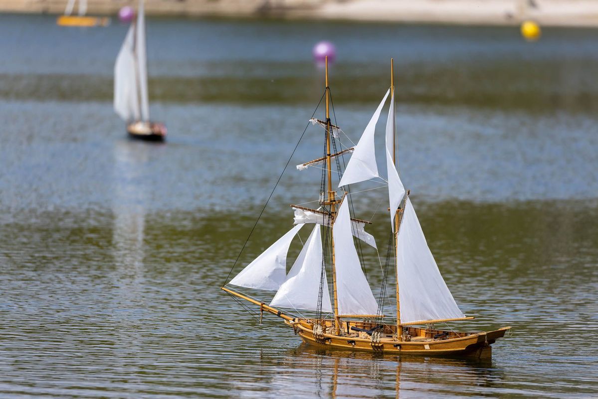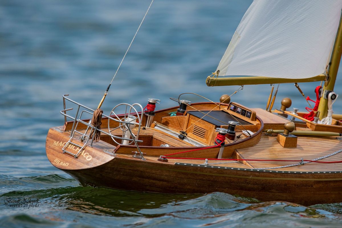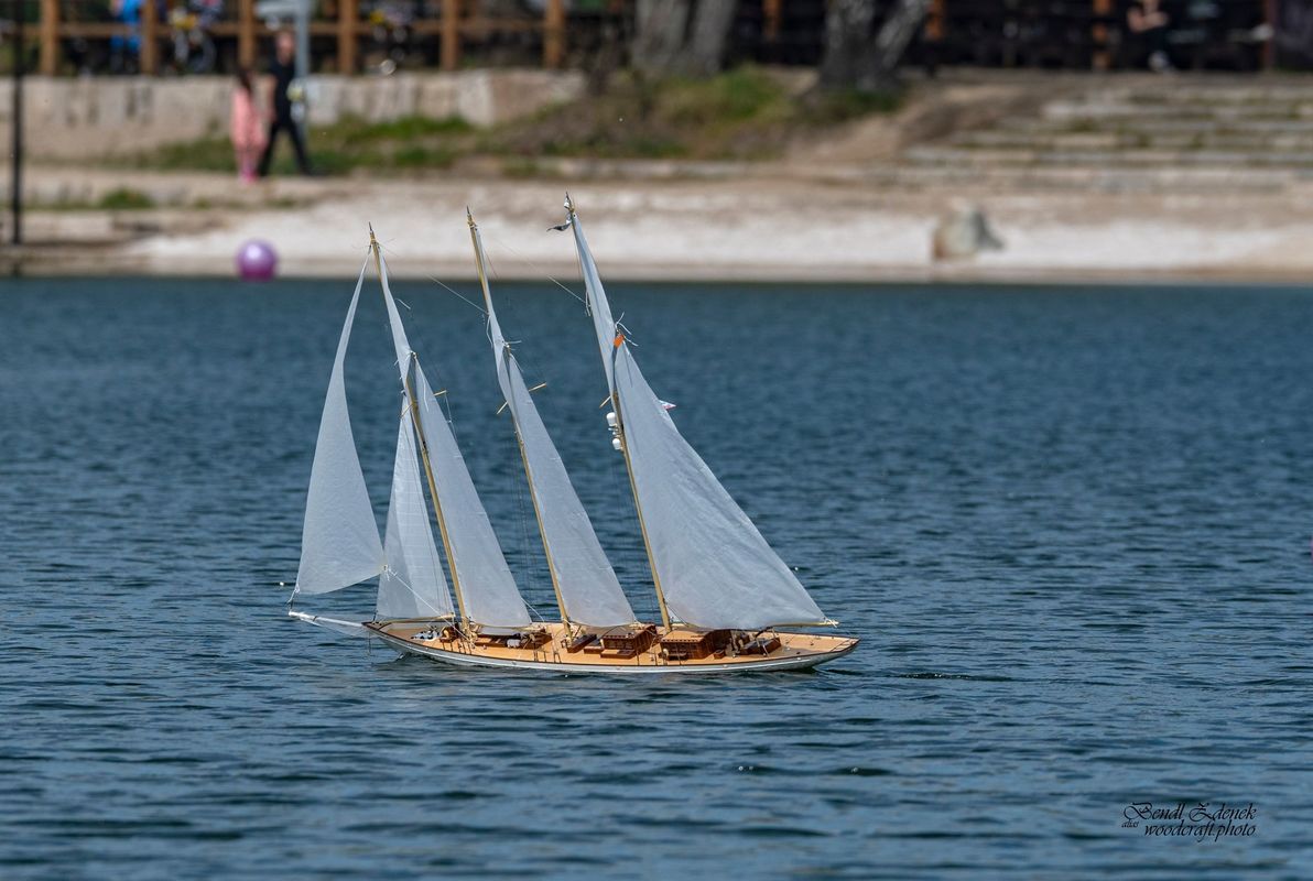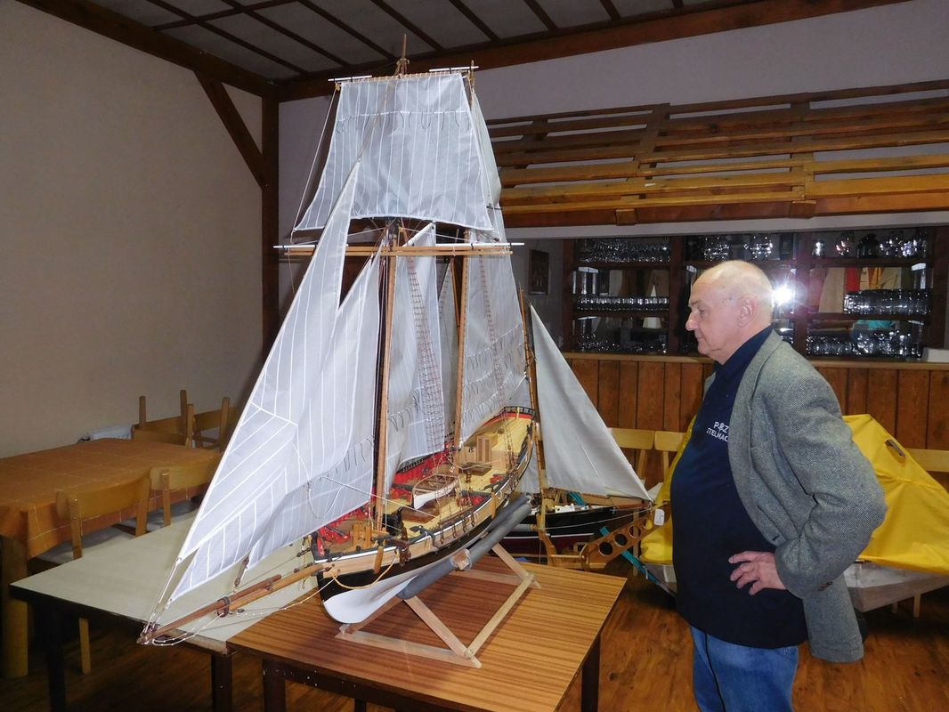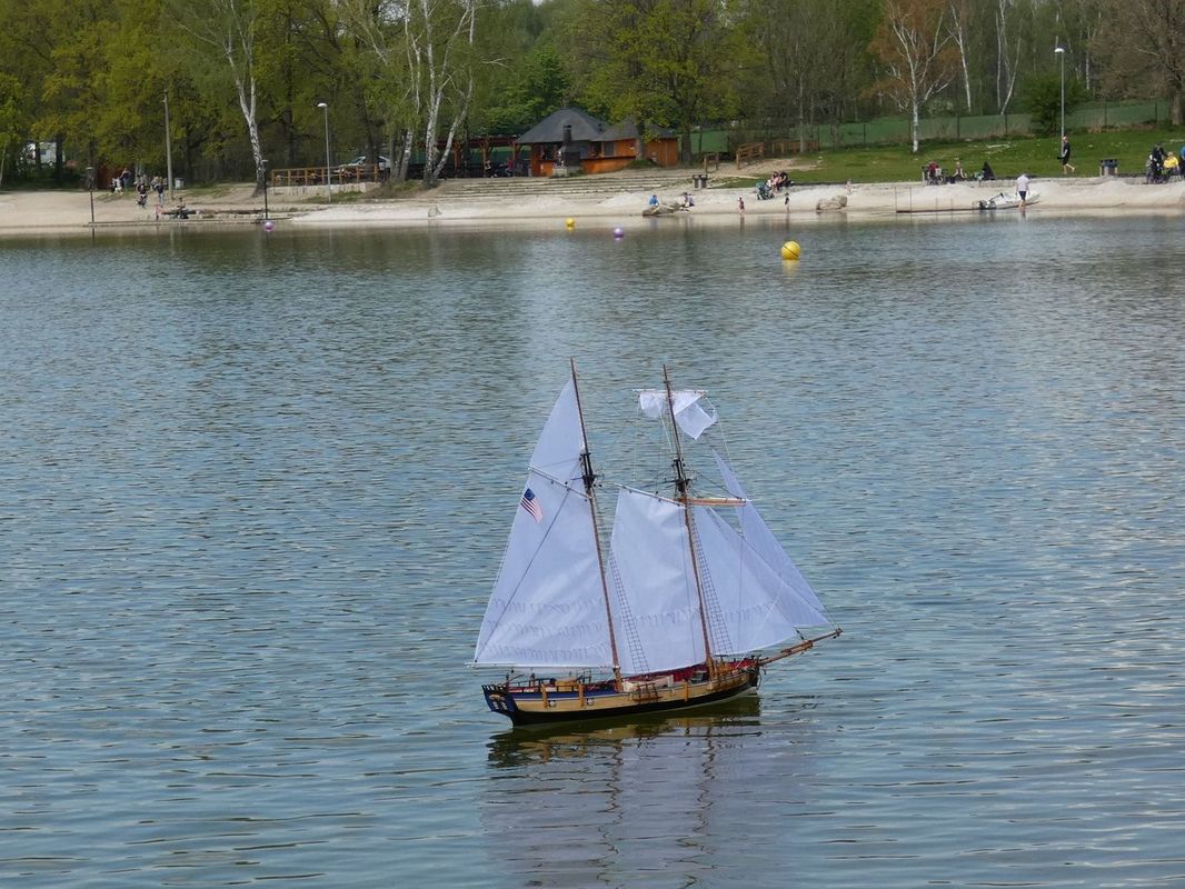 Tradiční páteční mezeru mezi zahájením a první jízdou, způsobenou bodováním modelů jsme vyplnili instalací meterologické stanice. A pak už začal kolotoč jízd. Očekávanou událostí při jízdách NSS-B byla po letech účast dvou modelů, které spadaly svou příčnou plachtou do kategorie NSS-C. Ta se v předchozích letech trochu zvrhla do modelů s moderním latinským oplachtěním. Po deseti letech od období lodí jako La Renard, Sweden Yacht, Elen, Sultana (2012), se objevily dvě nové lodě. Milanova Berbice a polský Halkon. Oba modely jsou Baltimorské škunery a každý nese jednu příčnou plachtu. U obou konstruktéři – modeláři přistoupili k ovládání jediné příčné plachty. Na místě jsem tak mohl přímým dotazem u Borka Dvořáka ověřit to, co je myšleno „ovládáním“ příčné plachty, které musí být na modelu funkční. Odpověď zněla, že myšleno bylo zejména ovládání směrového nastavení ráhna k ose lodi. Ale že vzhledem k možnému rozšíření kategorie by uznal i jen funkční kasání plachty.