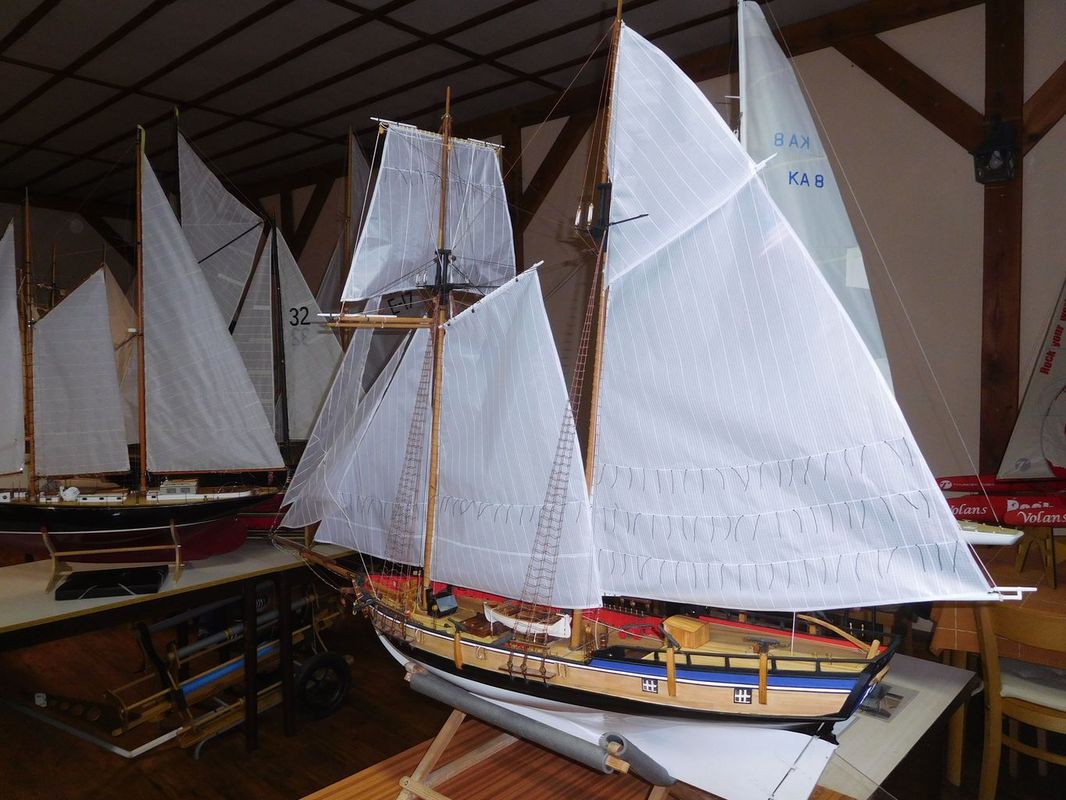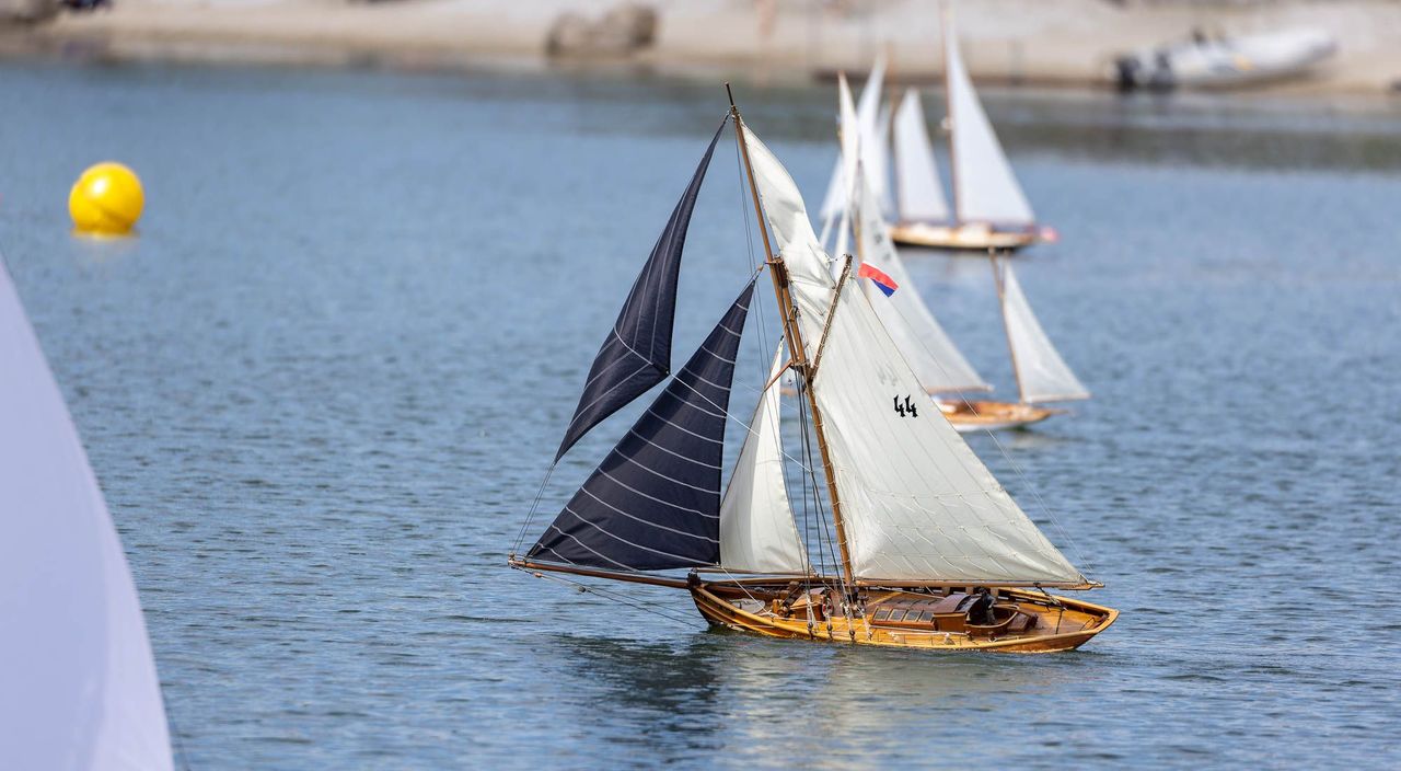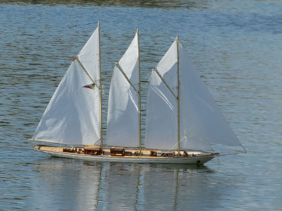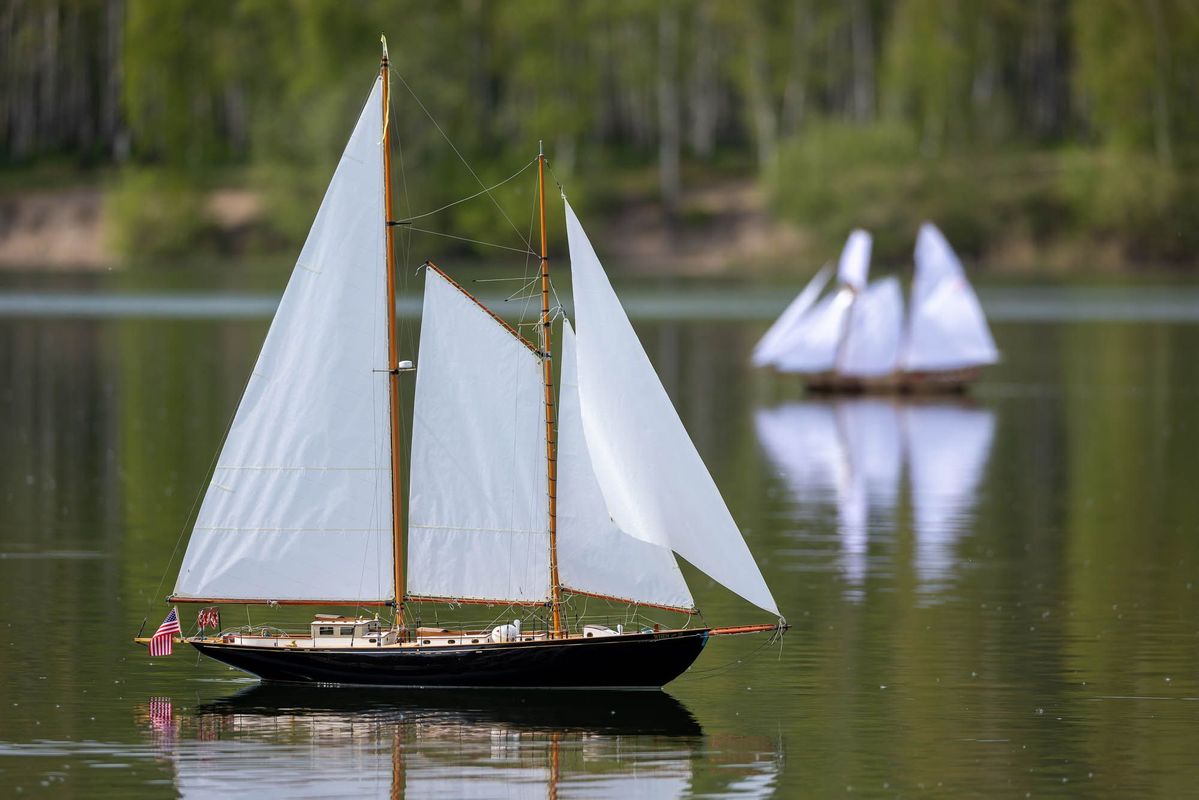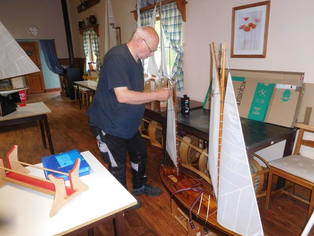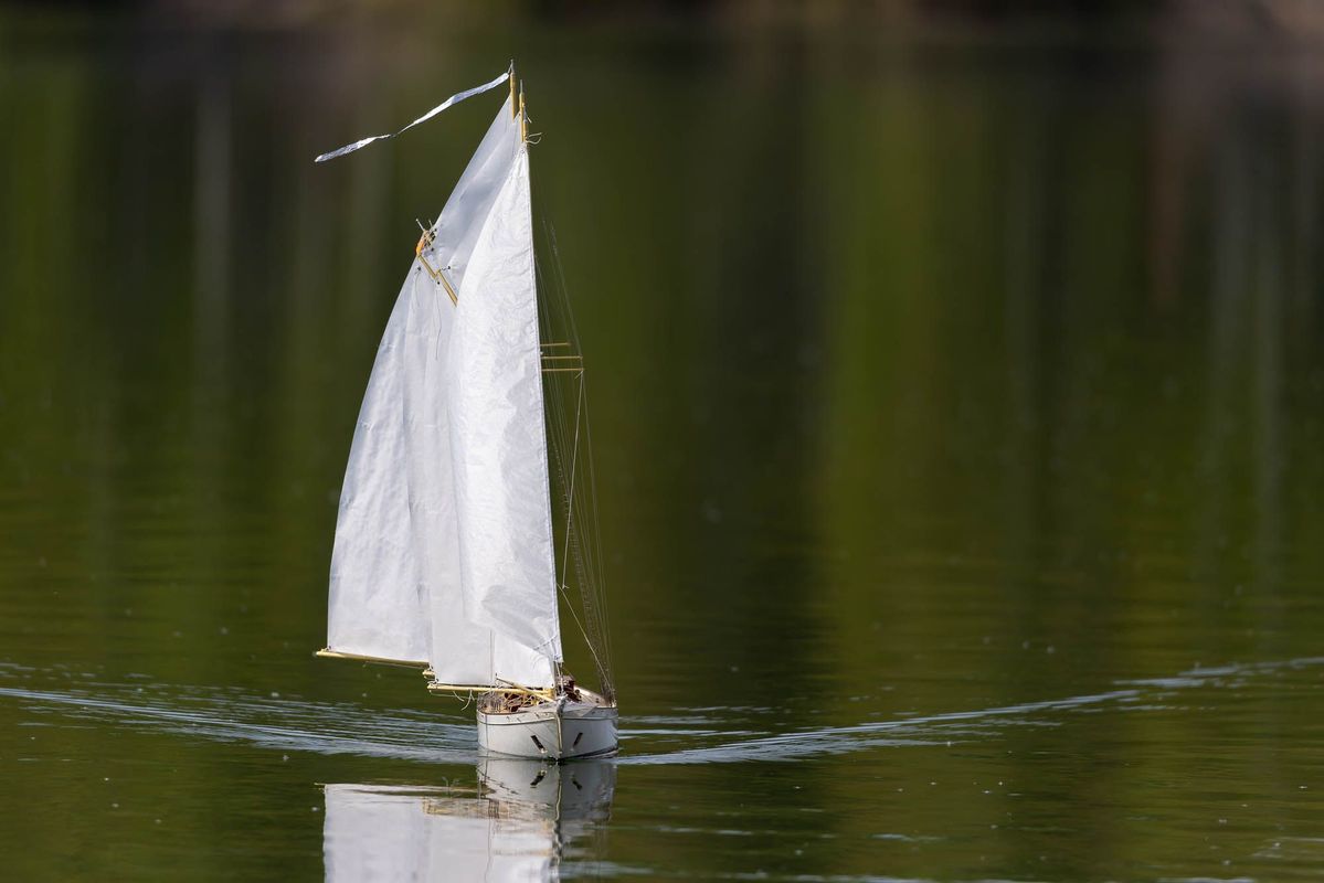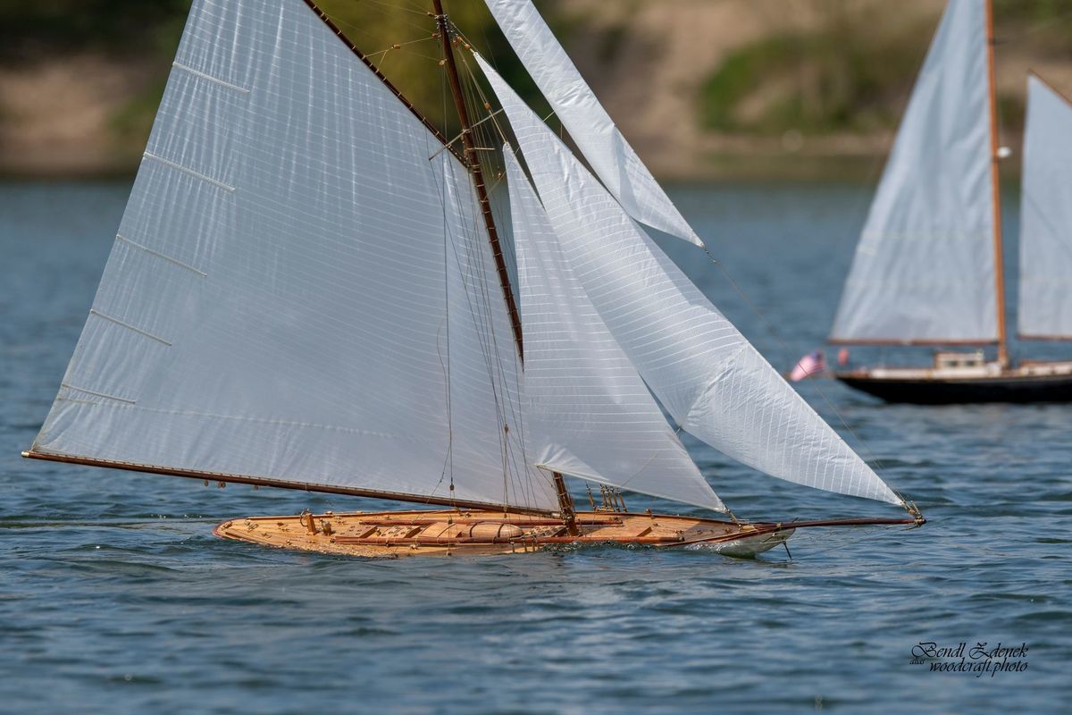 Tradiční páteční mezeru mezi zahájením a první jízdou, způsobenou bodováním modelů jsme vyplnili instalací meterologické stanice. A pak už začal kolotoč jízd. Očekávanou událostí při jízdách NSS-B byla po letech účast dvou modelů, které spadaly svou příčnou plachtou do kategorie NSS-C. Ta se v předchozích letech trochu zvrhla do modelů s moderním latinským oplachtěním. Po deseti letech od období lodí jako La Renard, Sweden Yacht, Elen, Sultana (2012), se objevily dvě nové lodě. Milanova Berbice a polský Halkon. Oba modely jsou Baltimorské škunery a každý nese jednu příčnou plachtu. U obou konstruktéři – modeláři přistoupili k ovládání jediné příčné plachty. Na místě jsem tak mohl přímým dotazem u Borka Dvořáka ověřit to, co je myšleno „ovládáním“ příčné plachty, které musí být na modelu funkční. Odpověď zněla, že myšleno bylo zejména ovládání směrového nastavení ráhna k ose lodi. Ale že vzhledem k možnému rozšíření kategorie by uznal i jen funkční kasání plachty.