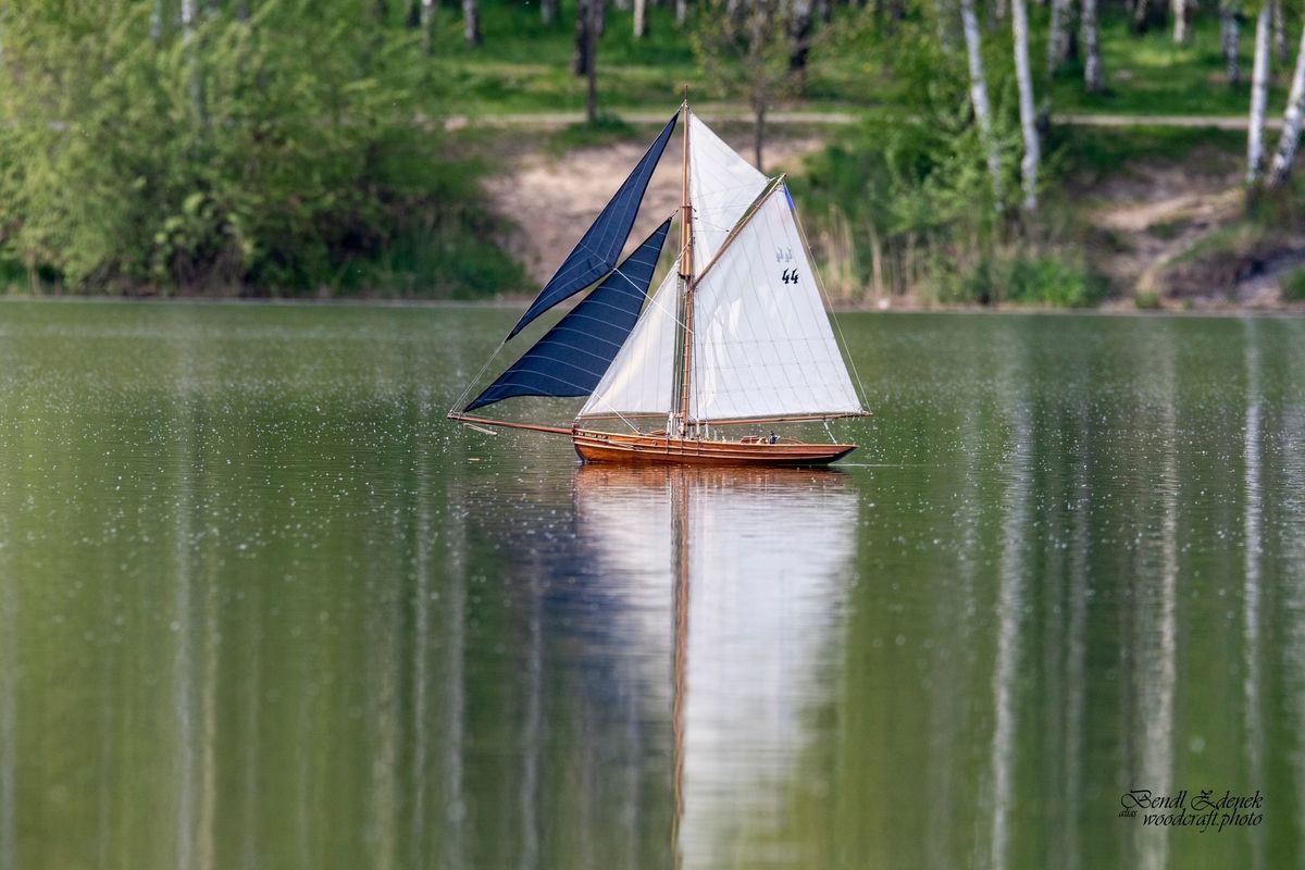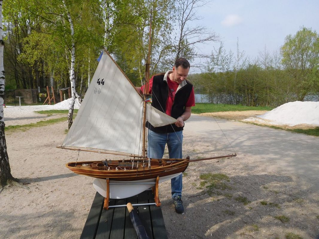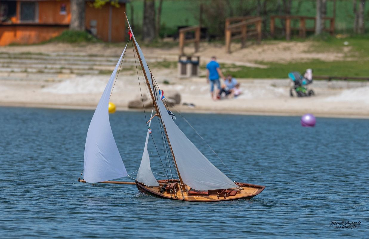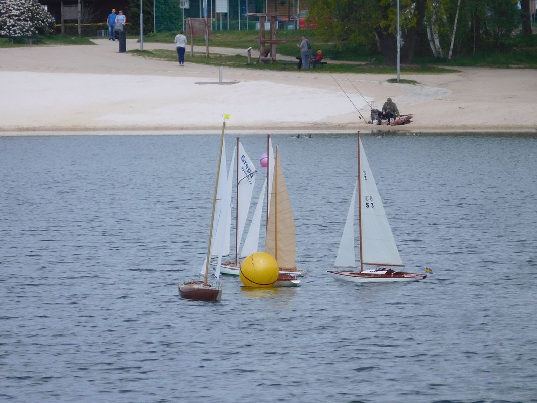 S napětím jsme tedy křižovali před prvním startem NSS-B a dvou NSS-C a slibovali si, že se těmto lodím vyhneme obloukem. Obě jsou krásně postavené, Berbice v nádherně pestrých barvách, Halkon zase v přírodním dřevu. Odpočítávání, a vyjeli jsme středním větru na první regatu, zase spolu s Céčky. Protože jsem měl model na vodě, zaznamenal jsem jen příběh Berbice, která se v půlce prvního kola naklonila, vítr ji připlácl k hladině a loď se začala pomalu potápět. Nový člun byl zrovna zaměstnán jinou kolizí a přes okamžitou Kubovu reakci dojel na místo potopení o pár vteřin později. Jak to bylo s Halkonem nevím, ale také bohužel nedojel první kolo. Jeho problém byl v přetížení servopohonů a velkými odběry došlo ke spečení napájecích kabelů a tím loď musela z vody.