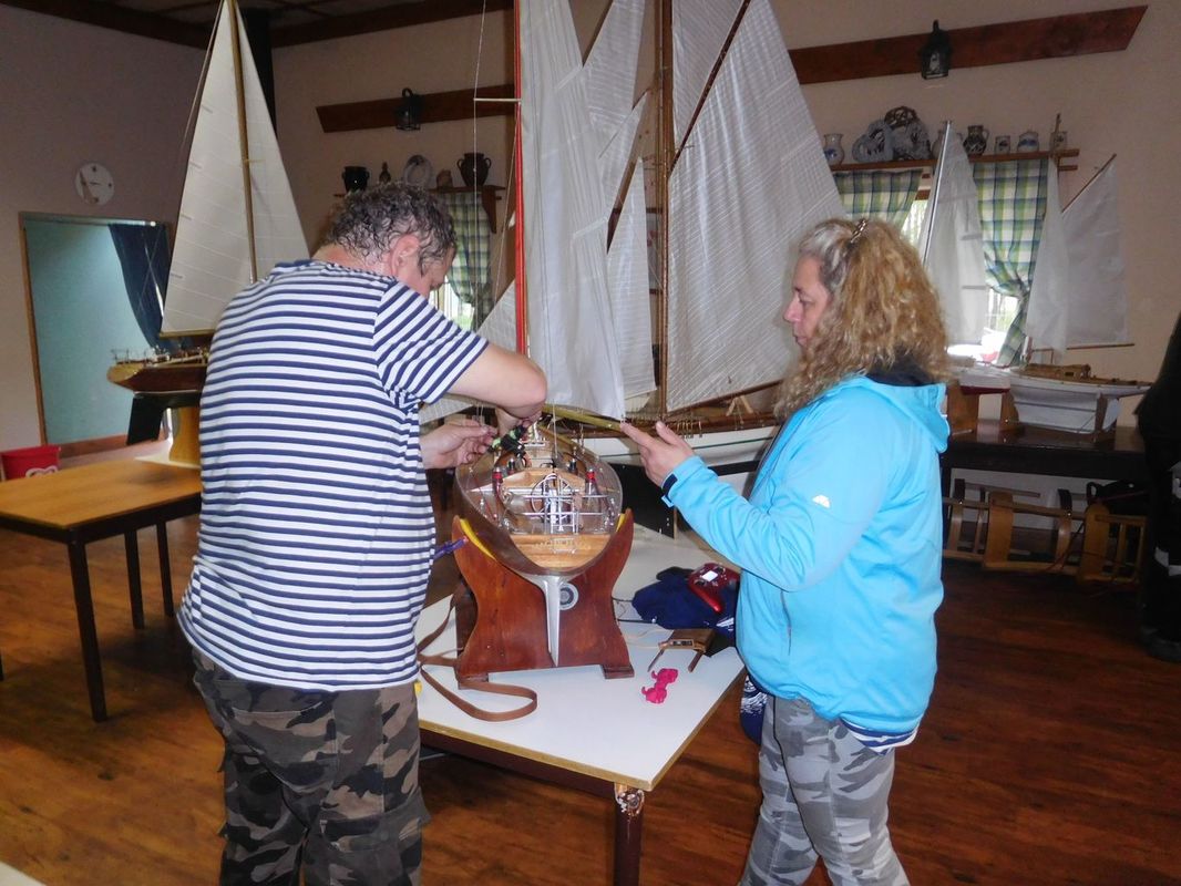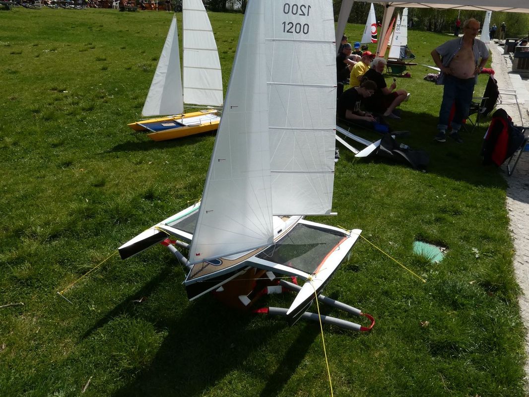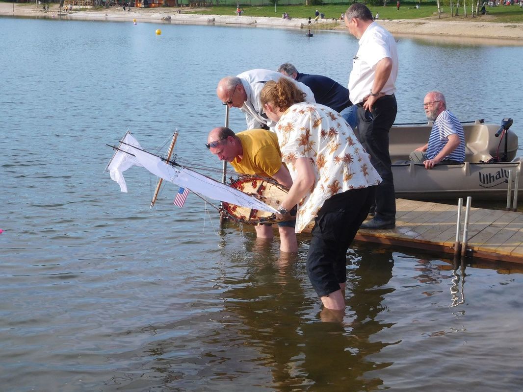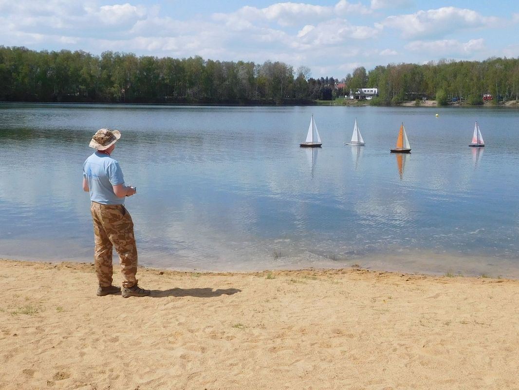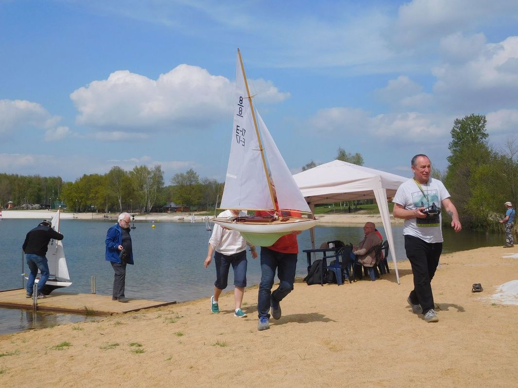 S napětím jsme tedy křižovali před prvním startem NSS-B a dvou NSS-C a slibovali si, že se těmto lodím vyhneme obloukem. Obě jsou krásně postavené, Berbice v nádherně pestrých barvách, Halkon zase v přírodním dřevu. Odpočítávání, a vyjeli jsme středním větru na první regatu, zase spolu s Céčky. Protože jsem měl model na vodě, zaznamenal jsem jen příběh Berbice, která se v půlce prvního kola naklonila, vítr ji připlácl k hladině a loď se začala pomalu potápět. Nový člun byl zrovna zaměstnán jinou kolizí a přes okamžitou Kubovu reakci dojel na místo potopení o pár vteřin později. Jak to bylo s Halkonem nevím, ale také bohužel nedojel první kolo. Jeho problém byl v přetížení servopohonů a velkými odběry došlo ke spečení napájecích kabelů a tím loď musela z vody.