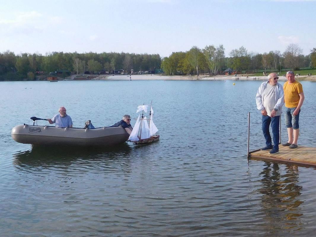 Patří se vyjádřit velký dík oběma potápěčům, kteří vodu opustili až za nějaký čas. Prostě si po úspěšném nálezu a pomoci s odlepením lodě ze dna jen tak někam zaplavali, když už byli dole. Při odstrojování a ukládání výstroje jsme slyšeli, jak to „tam dole“ probíhalo. Loď si prý hověla měkce na dně, mírně nakloněna a svítila bílými plachtami (ve světle baterií). Tak prý na sebe koukli a zalitovali, že musí nahoru. Byl by to další z objektů na dně, které mají zaměřeny a zakresleny v podvodní mapě, které čas od času navštěvují. Inu každý koníček má své a nám se líbí lodě na vodní hladině.