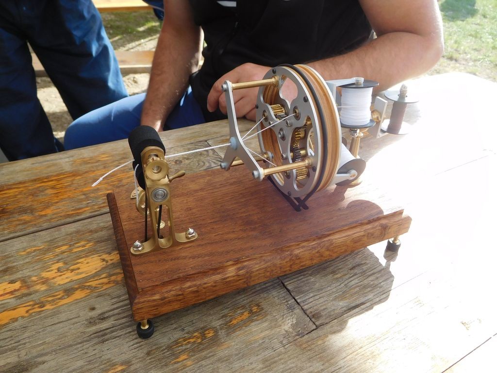 A vlastně ještě jedna novinka se objevila – Michal přivezl svůj zcela nový splétač lan. Je zkonstruován zcela v jeho stylu. Funkční a současně by mohl být ozdobou muzea historických strojů, nebo se vyjímat v obýváku na čestném místě. Mám slíbeno, že se po čase objeví na stránkách více informací v samostatném článku.
