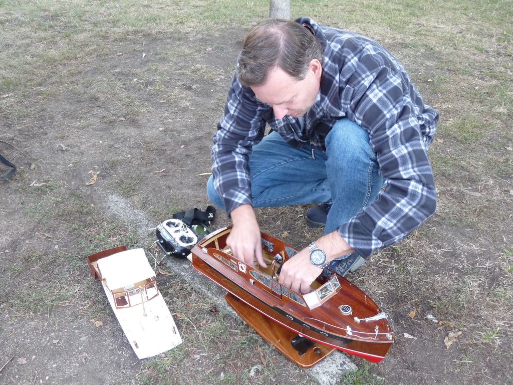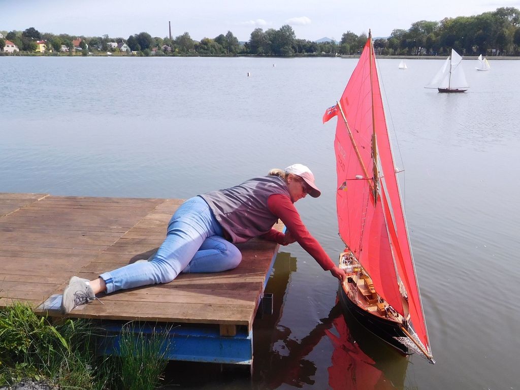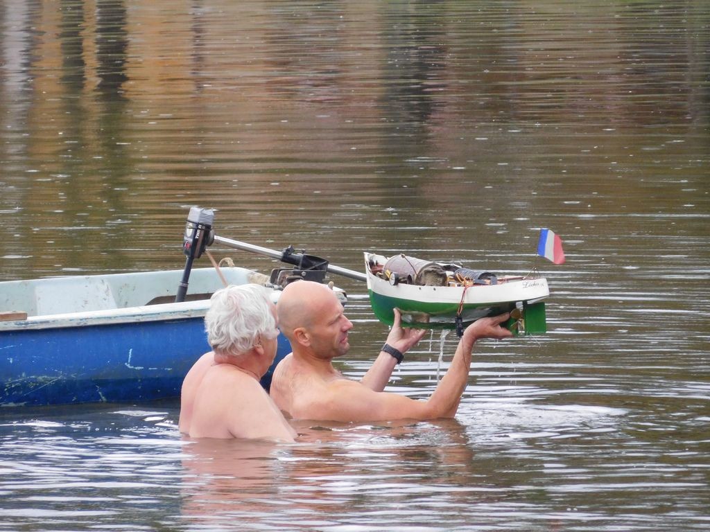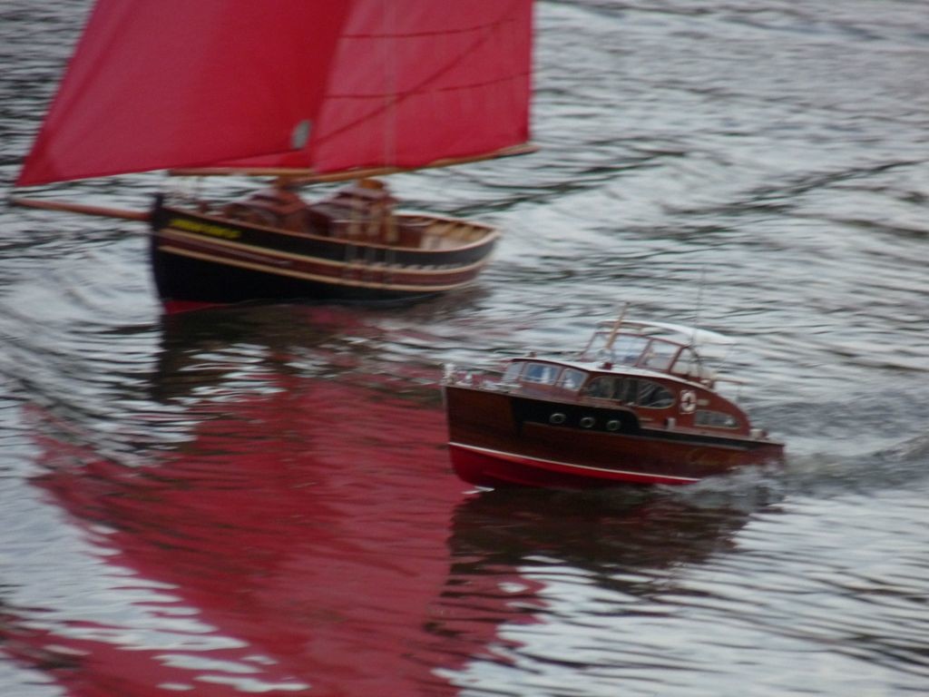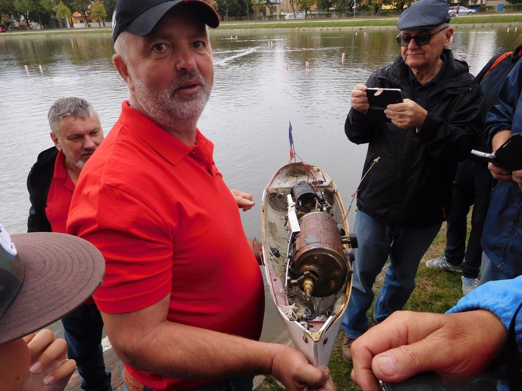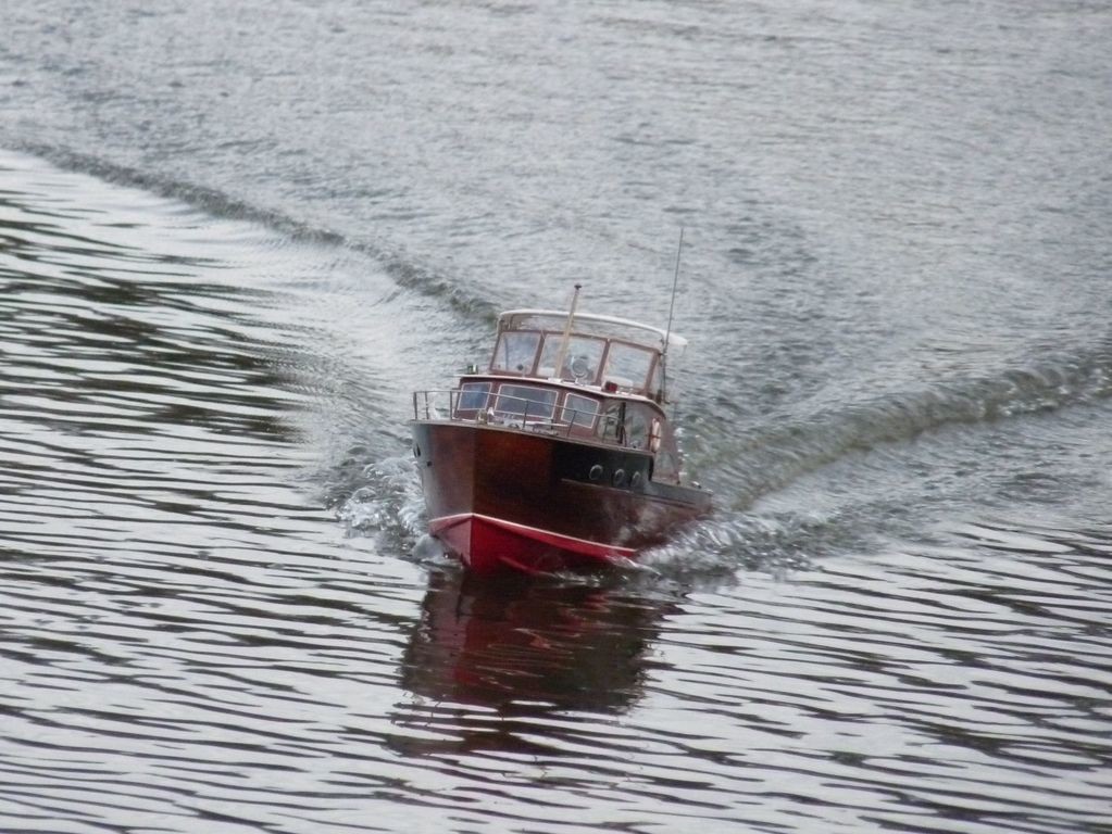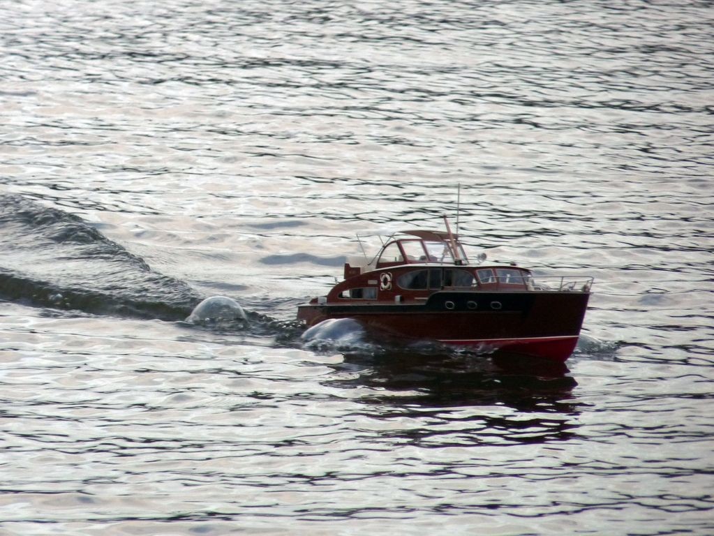 V podvečer vytáhl Pavel Mrázek svůj nový model, motorový člun Victoria. Už byl k vidění na Kristýně, ale na vodě jsem ho viděl poprvé. Rychlá jízda inspirovala několik fotografů včetně mne pořídit akční snímky „z ruky“. Když jsem později vyházel všechny, kde byla jen část modelu – příď či záď a následně i ty nedoostřené, zůstalo jich jen pár. Mám od Pavla i jeho pěkný popis stavby modelu, o který se rád podělím během období prací v loděnicích (a těším se na další zprávy a fotky od vás všech).