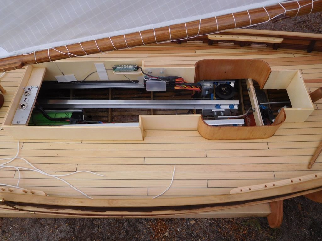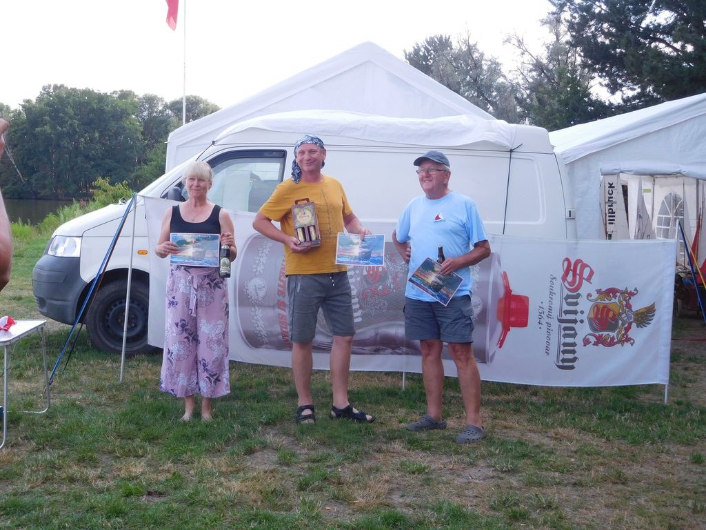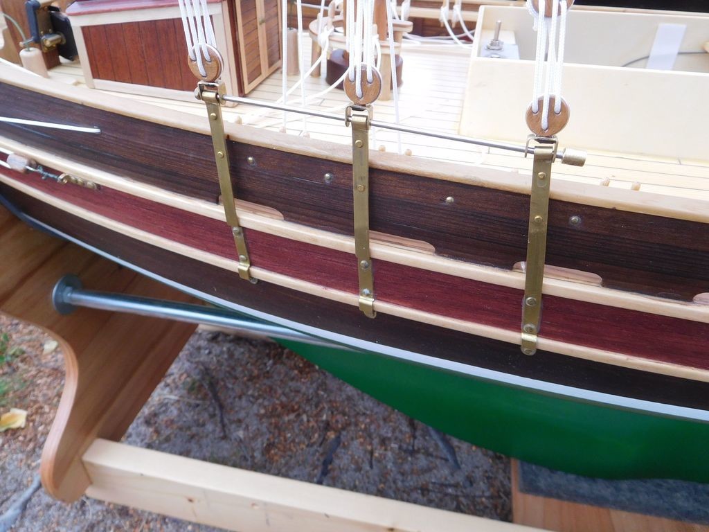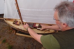 Loď se na vodě chová skvěle, sám jsem si to mohl vyzkoušet. Tím, že nemá přetahovanou přední plachtu je navíc její ovládání jednodušší, zejména při rychlých obratech. Situaci mi stěžovalo jen „letecké“ rozložení povelů na kniply soupravy. Není divu, že se zkušeným kapitánem dosáhla hned při první soutěži na druhé místo, hned za When & If Pepíka Slížka. Obě lodní novinky samozřejmě nemohly uniknout Standovi, který provedl technickou přejímku modelů s proměřením a zvážením. Samozřejmě za asistence své manželky a přihlížení ostatních.