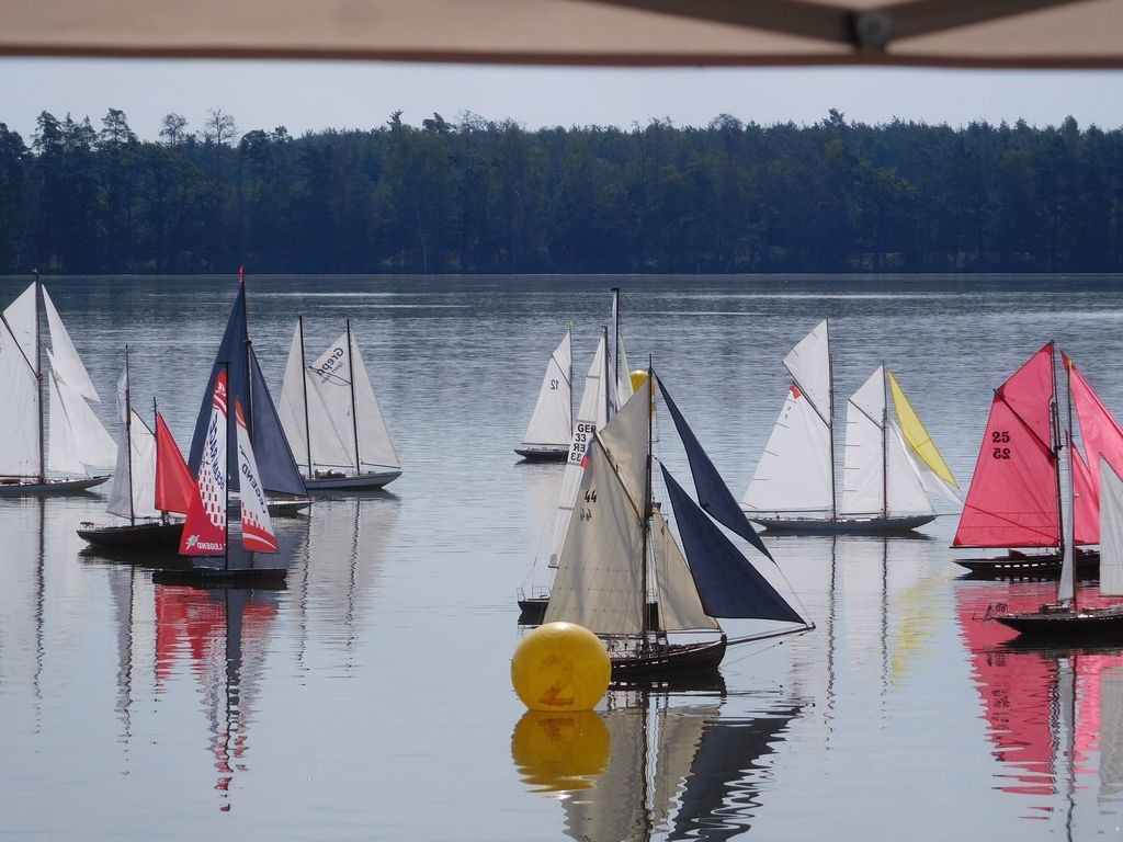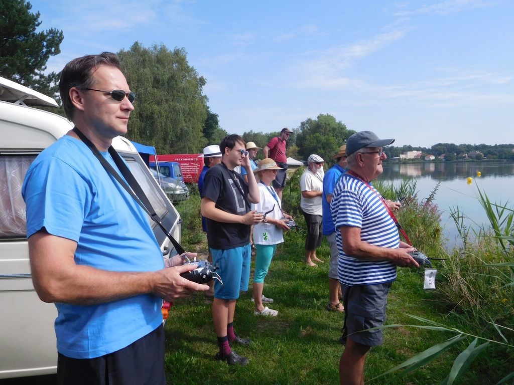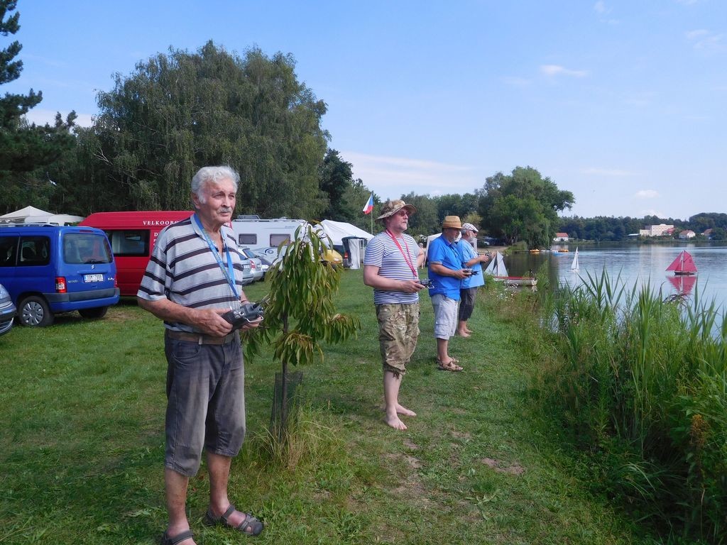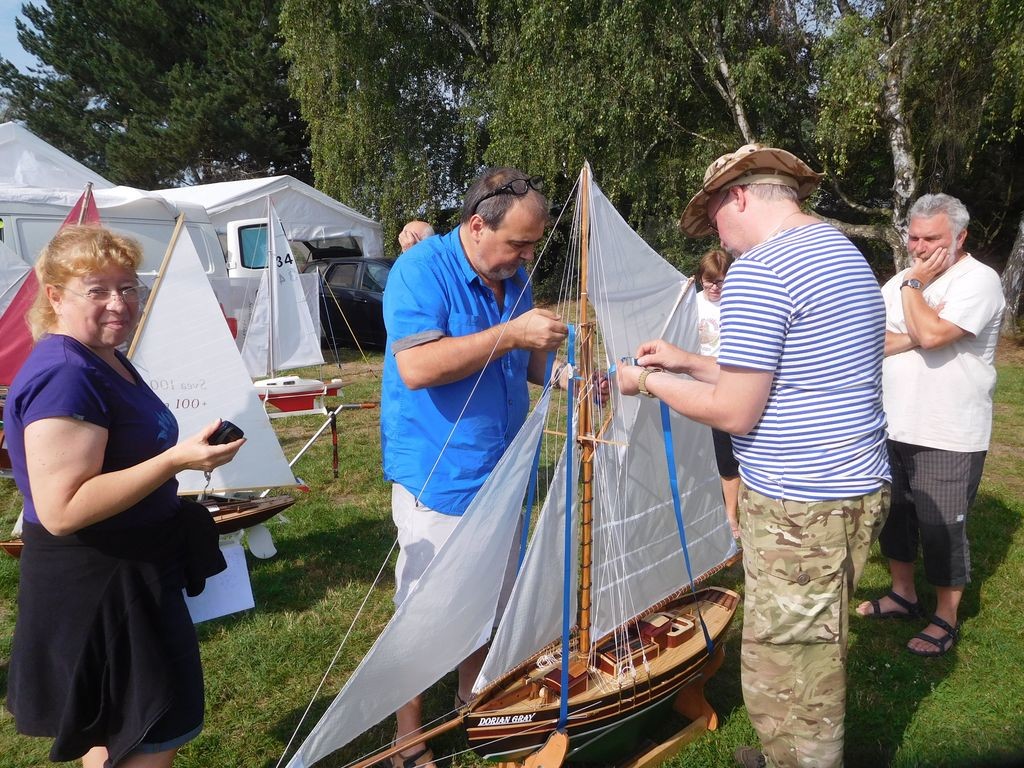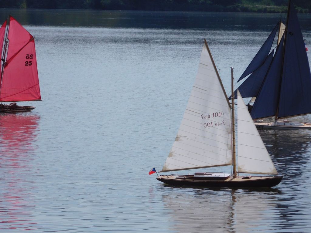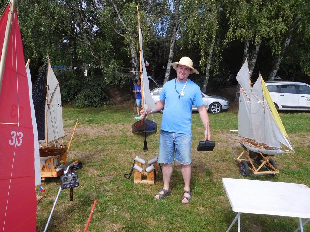 Svůj nový model přivezl Pavel Macháček, nová tvář mezi námi. Snad jsme jej přijali mezi sebou dobře a nevystrašili při prvních jízdách. Je zcela jasné, že samotnému na rybníku se jezdí zcela jinak. Pavel vystrašeně nevypadal, jízdy si užíval a postupně se lepšil. Model byl od prvních okamžiků sestavení okukován a mezi jízdami zase kontrolováno, co se má dopnout či naopak povolit, aby bylo oplachtění účinnější. Dorian Gray IV. je velmi čistě postaven, a když jsme se dozvěděli, že od prvních žeber do finálního modelu uběhlo sotva pár měsíců, tak nám spadla čelist. Tedy aspoň mne s mými výrobními lhůtami.