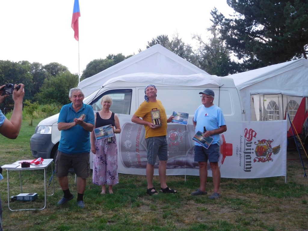 Nedělní ráno slibovalo další horký den a vítr se zřejmě unavil v noci, kdy ke břehu přivál všechnu zelenou hmotu z hladiny k našemu startovišti. Během čekání na vítr jsme pomalu složili stany, a když i po desáté byl klid, proběhlo vyhodnocení, loučení a rozjezd domů.
