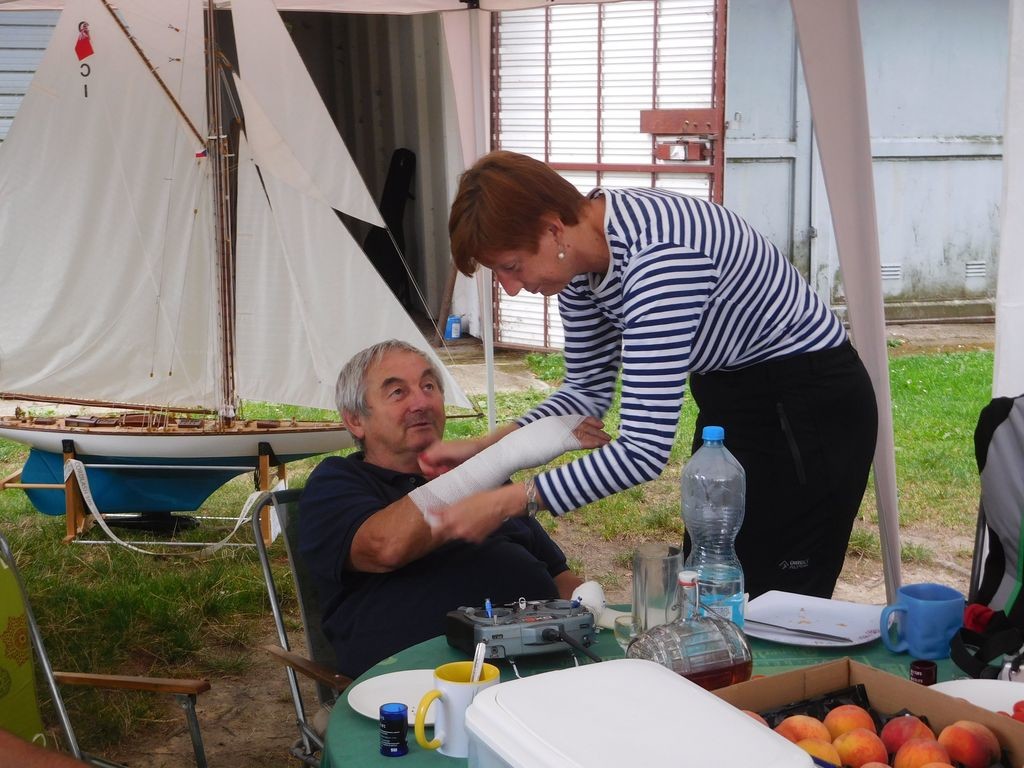 I přes tyto všechny zdravotní překážky (a to pomíjím štípance od komárů a muchniček) byly v pátek odstartovány tři jízdy lodí, kterých se celkem zúčastnilo 8 plachetnic. Vzhledem k tomu, že moc nefoukalo, nedošlo k žádným výrazným kolizím a záchranný člun vyjel pouze jednou, a to pro výstrahu.