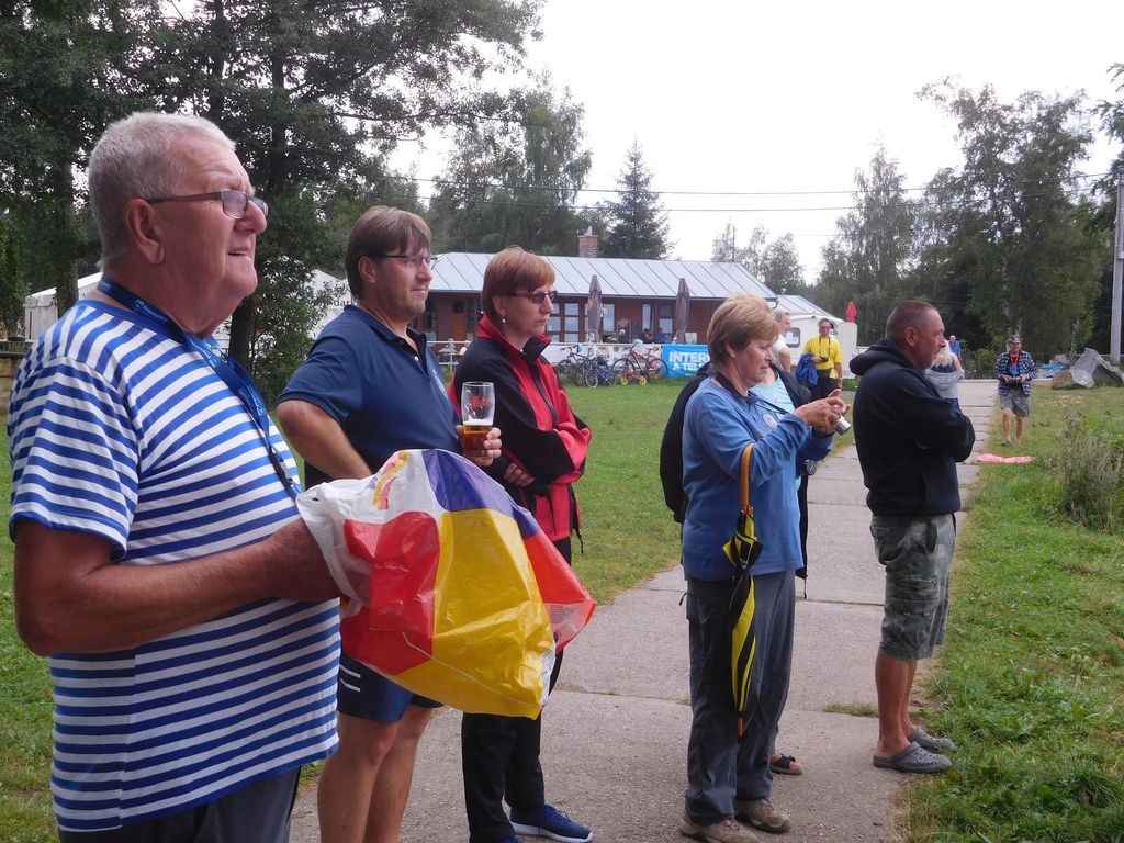 Sobota byla chladnější, bez sluníčka a opět bez větru. Tedy aspoň v době, kdy jsme jeli naše tři jízdy. A protože po ukončení poslední jízdy začalo „dýchat“, rozhodli se někteří, že pojedou s loděmi na hráz na pivo a zpátky. Mezitím Irenka spočítala výsledky jízd, takže v sobotu odpoledne proběhlo vyhlášení výsledků, které nám zpestřila Hanka v převleku. Povedlo se jí i vylepšit Zdendu, protože mu namalovala úplně neodolatelný knír 😊.