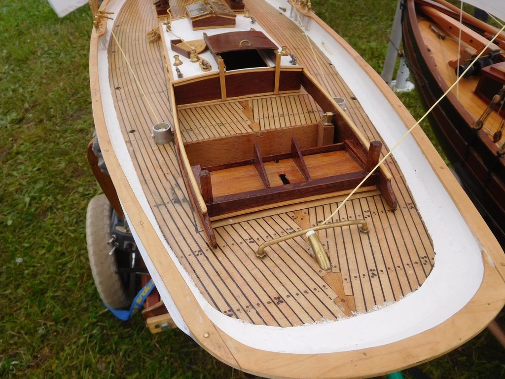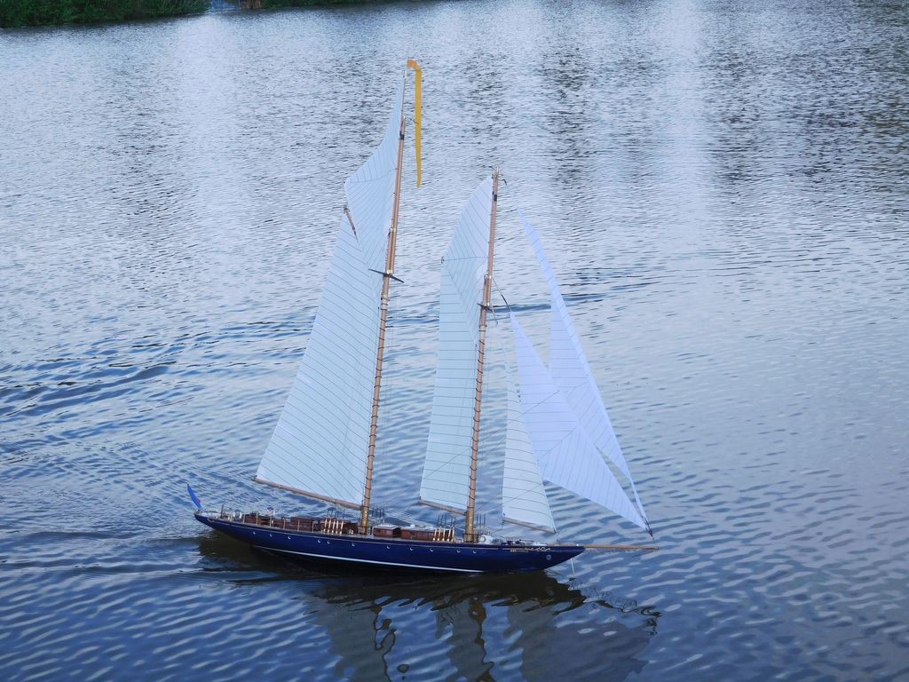 Před první jízdou jsem z krabice vybalil a sestavil Vlaštovku a Amazonku – své dvě zbrusu nové footy, postavené pro (mou) radost. Trochu jsem se obával, jaká bude reakce – přeci jen nezapadají mezi ty velké plachetnice, ale ohlas byl velmi pozitivní. Lodě šly z ruky do ruky (tedy vysílače) a díky klidné vodní hladině a mírně sílícímu větru obě jezdily pěkně. Snad byly i inspirací pro další a připravím pro stránky článek o jejich stavbě.