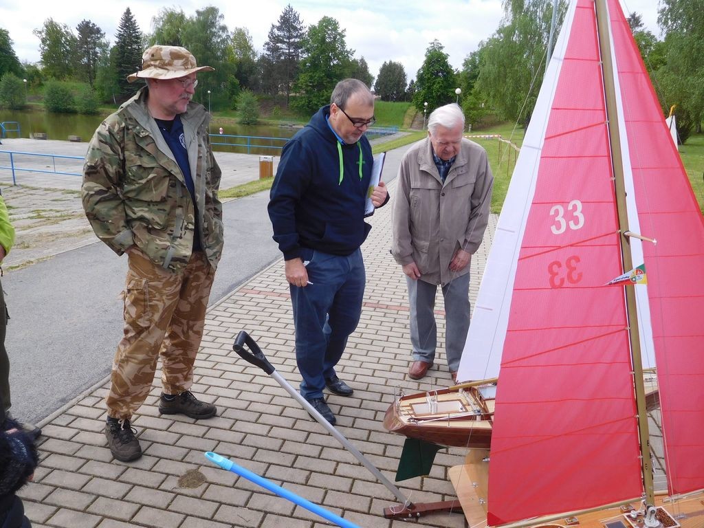 Byl to den, který jsem do Bakova přijel a tak čtvrteční vítání po dlouhé přestávce nemohu komentovat. Rychlá registrace do soutěže a hned strojit loď. Do toho nástup a zahájení Seriálu MiČR pro rok 2021 – snad se podaří odjet všech šest soutěží (ve třech víkendech). Čas do první jízdy mi opravdu utekl rychle. Po sestavení Adixe (po zimě jde vše nějak komplikovaně) jsem sice přepnul na vysílači model, ale ne až tak úplně (chybělo jedno potvrzení v menu), a rychlá zkouška serva plachet vyprodukovala nějaké divné zvuky z útrob lodi. Samozřejmě „jiná“ loď má jinak nastaveny omezení serv a tak to skončilo přejetím dorazu a shozením závitů smyčky z bubnu navijáku. V tomto případě nechápu, proč se jí říká nekonečná, když toto byl její konec. Naštěstí se s pomocí Pepy Slížka a jedné špice z kola podařilo všechny závity nahodit zpět. Vyšlo to přesně do startu první jízdy NSS-B po poledni – tedy dvě hodiny práce a stresu.