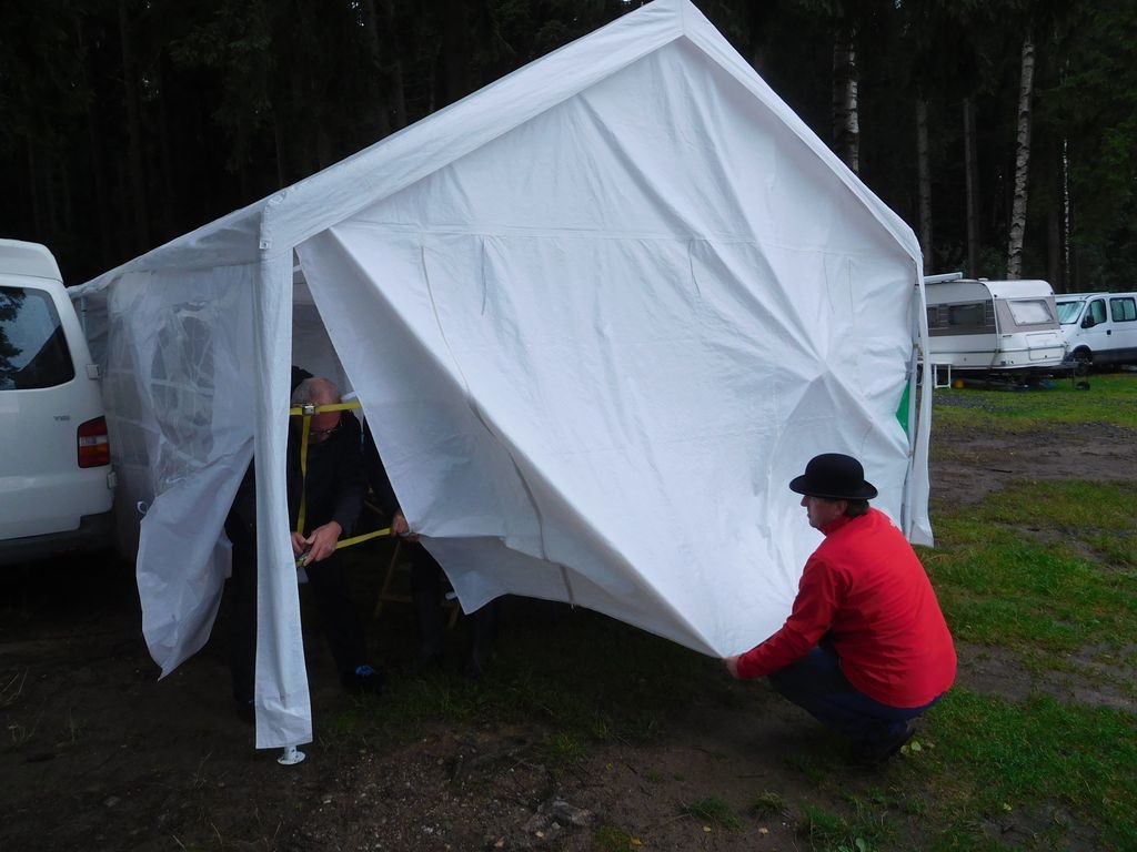 Díky Jakubíkům byl na místě velký stan, který hlavně ve čtvrtek 5. srpna přišel vhod, jelikož po celý den vytrvale pršelo a foukal celkem silný vítr. O nějakém trénování před páteční první jízdou nemohla být řeč. V pátek se počasí umoudřilo, takže celkem bezproblémově proběhly tři soutěžní jízdy, po kterých bylo na programu opékání buřtů. Jakmile se podařilo škrtnout sirkou, dorazily první kapky. Než se oheň rozhořel, přišla průtrž mračen, nicméně s vypětím všech sil se podařilo v opékání pokračovat – mnohé buřty byly současně spálené i zcela studené od vody. Kdo si chtěl pochutnat trochu v suchu, schoval se u WC.