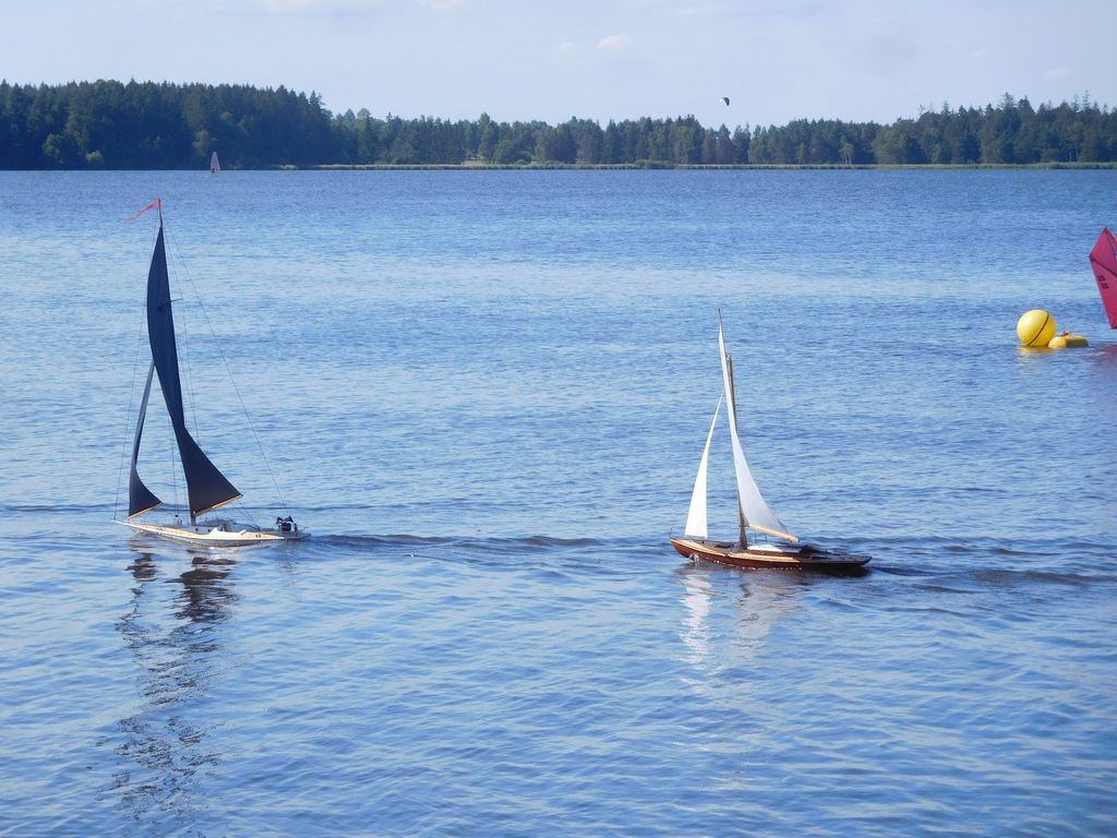 V sobotu se vrátilo letní počasí i na Velké Dářko, takže jsme vytáhli i kraťasy. Alespoň někteří. Náš hasič ve výslužbě se dočkal i ostrého výjezdu, když se mi povedlo se v jedné z jízd krátce po startu střetnout s Pepou Mrákotou, resp. s jeho Jolie Brise. Můj General Zaruski to odnesl zlomeným napínákem u kosatky. Než jsem jí narychlo přivázal bez něj, ostatní měli kolo za sebou. A tak jsem loď ponechal na suchu a konečně vzal do ruky foťák. Ne, že bych doposud nefotil, ale teď jsem se mohl věnovat focení naplno.