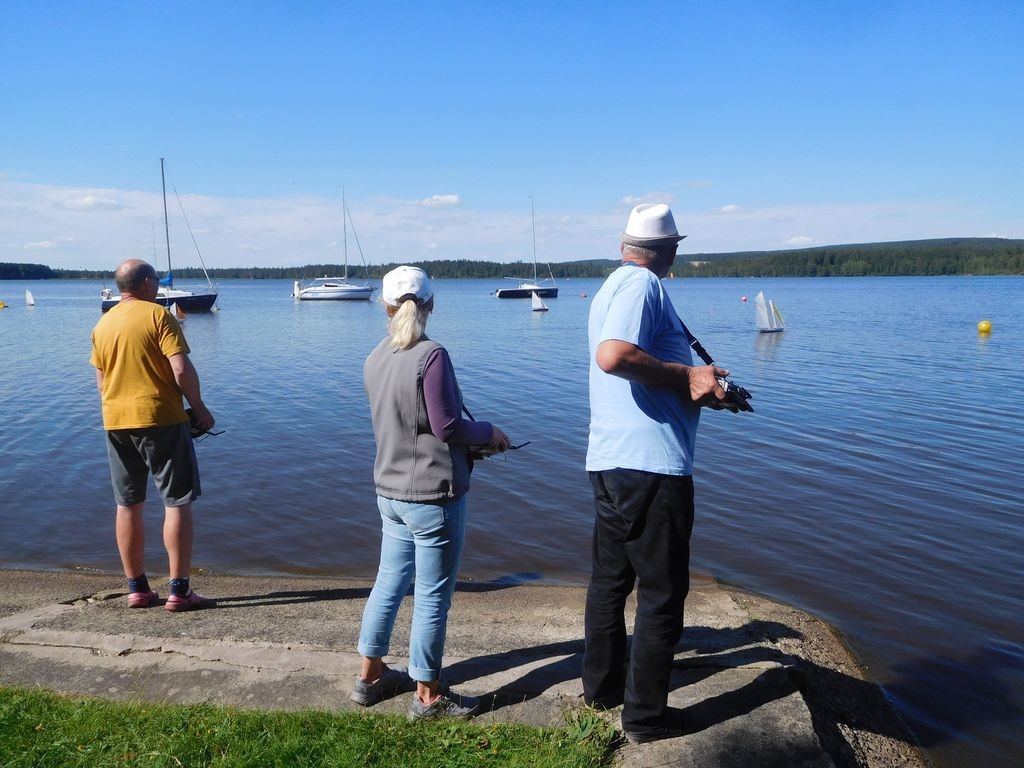 Během soutěžních dní se u vody vystřídalo 11 plachetnic NSS-H a jedna, která podmínky pro NSS-H nesplňovala – Machichaco Pavla Macháčka. Po delším čase se ukázal Jarda Pešek s Britannií, přičemž se trefil do kanálu, který používá Milan Dvořák. Přišlo se na to asi po 2 jízdách, kdy střídavě jeden i druhý řešili nějaké závady. Jelikož jsme něco podobného zažili i ve Velkém Vřešťově, nebude od věci oprášit skener pásma. Oproti loňsku, kdy v místě, kde stavíme trať, kotvilo pár plachetnic, jich letos přibylo. Křižování se tak stalo obtížnějším, jelikož se modely dostávaly do jejich větrných stínů. Kdo měl odvahu, tu nejbližší zcela objel.