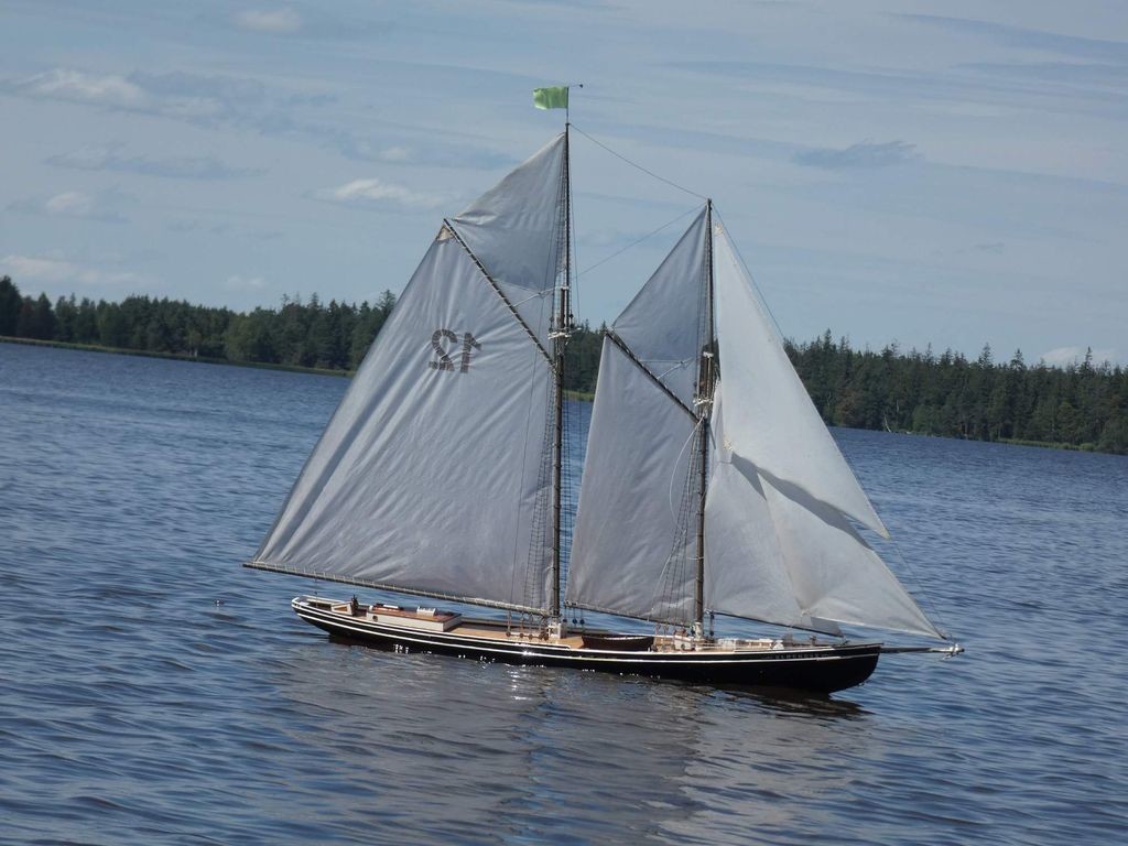 Ačkoli jsem se těšil, jak na Velké Dářko vezmu Thalassu z dílny Karla Egrta, jejímž majitelem jsem se před nedávnem stal, po měření nutných údajů pro technický průkaz jsem musel tuto myšlenku opustit. Tušíte správně – fatální problém nastal při měření skutečné vodorysky, během kterého do trupu vzlínala voda rychleji, než by bylo zdrávo (asi půl litru za 5 minut kroužení na bazénu), a tak jsem pro jistotu naložil plachetnici General Zaruski. Ta sice trpí různými neduhy, ale voda do ní neteče. K modelu jsem naložil ještě notebook, jelikož jsem na poslední chvíli dostal na hrb zpracování výsledků.