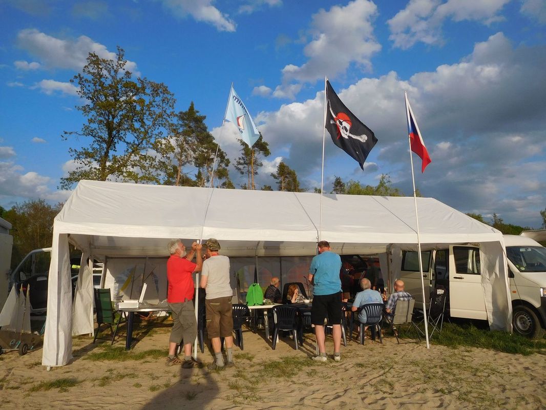 Kemp jsme ve čtvrtek zastihli v přípravách na sezónu. U našeho startoviště probíhaly terénní úpravy, nejbližší záchodky v uzavřené restauraci byly také zamčené a byl také problém s počtem aut, které mohly parkovat u našeho startoviště. Foukal velmi silný vítr, který po celý víkend zvedal prach z písčitých břehů a tak jsme si po týdnu opět užili písčitý víkend.