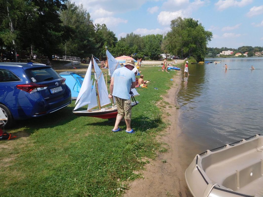 Na Buňkovském rybníku se představily dvě nové lodě obě Béčka: Pepa Mrákota přijel s lodí Pen Duick (škoda, že nepřijel Michal Šenekel, byl by to souboj velkých lodí). Pavel Macháček přijel s lodí, škunerem Helen B. Thomas. Přijel, respektive byl přivezen i Jarda Zeman, kterého jsme mezi námi rádi uvítali. Přijel taky Peter Kozák s dlouho neviděným Mistralem a Pragou V3S z dílen Štefana Ábela.