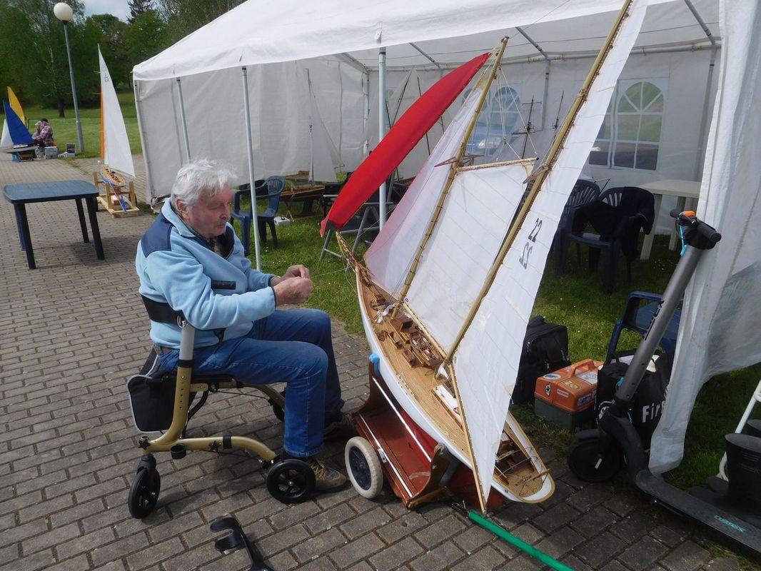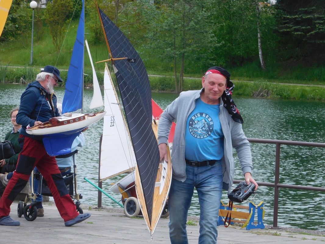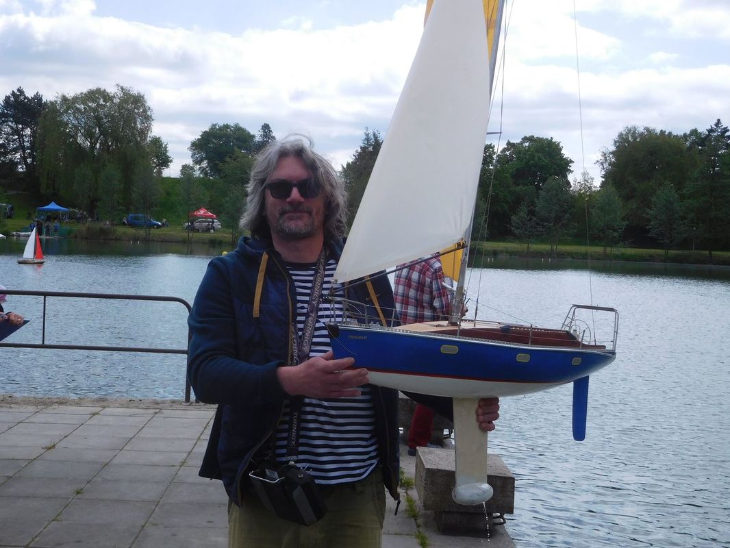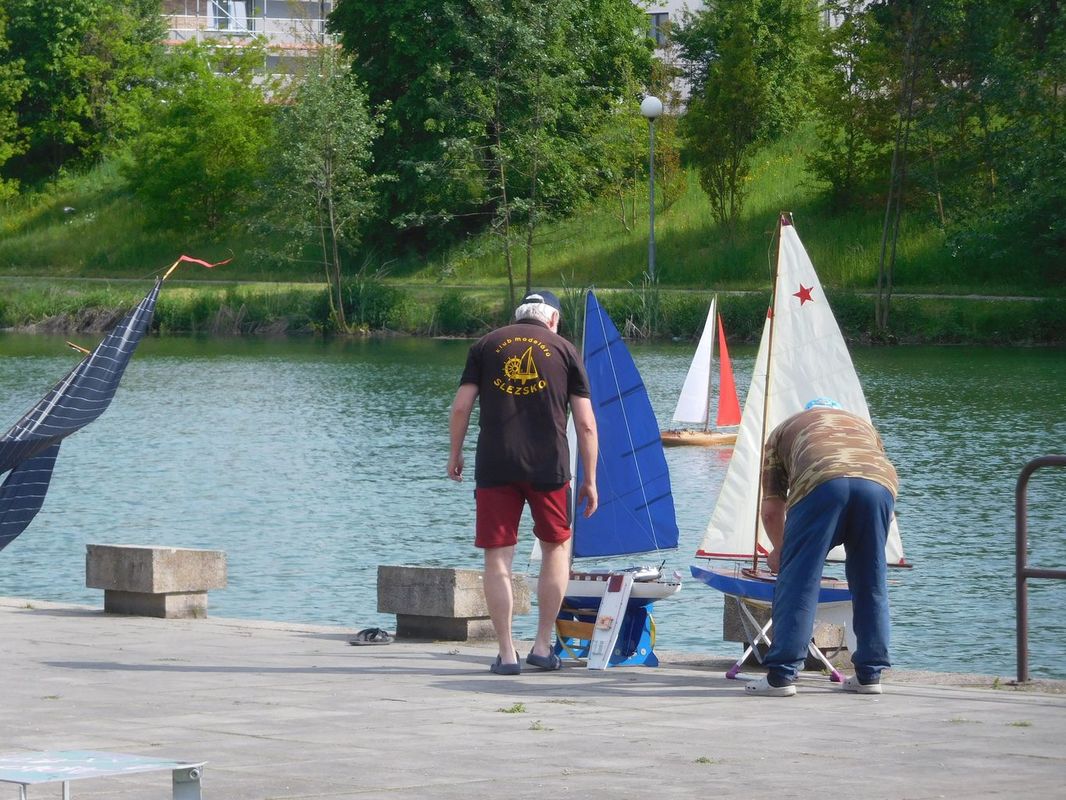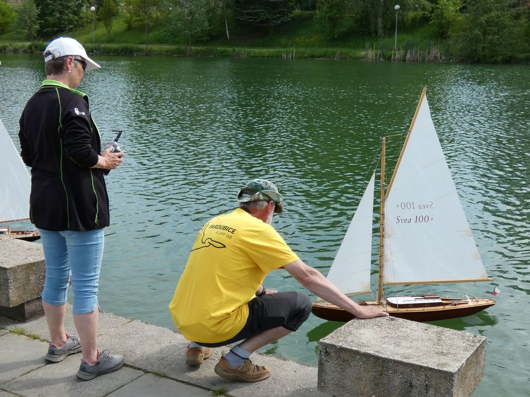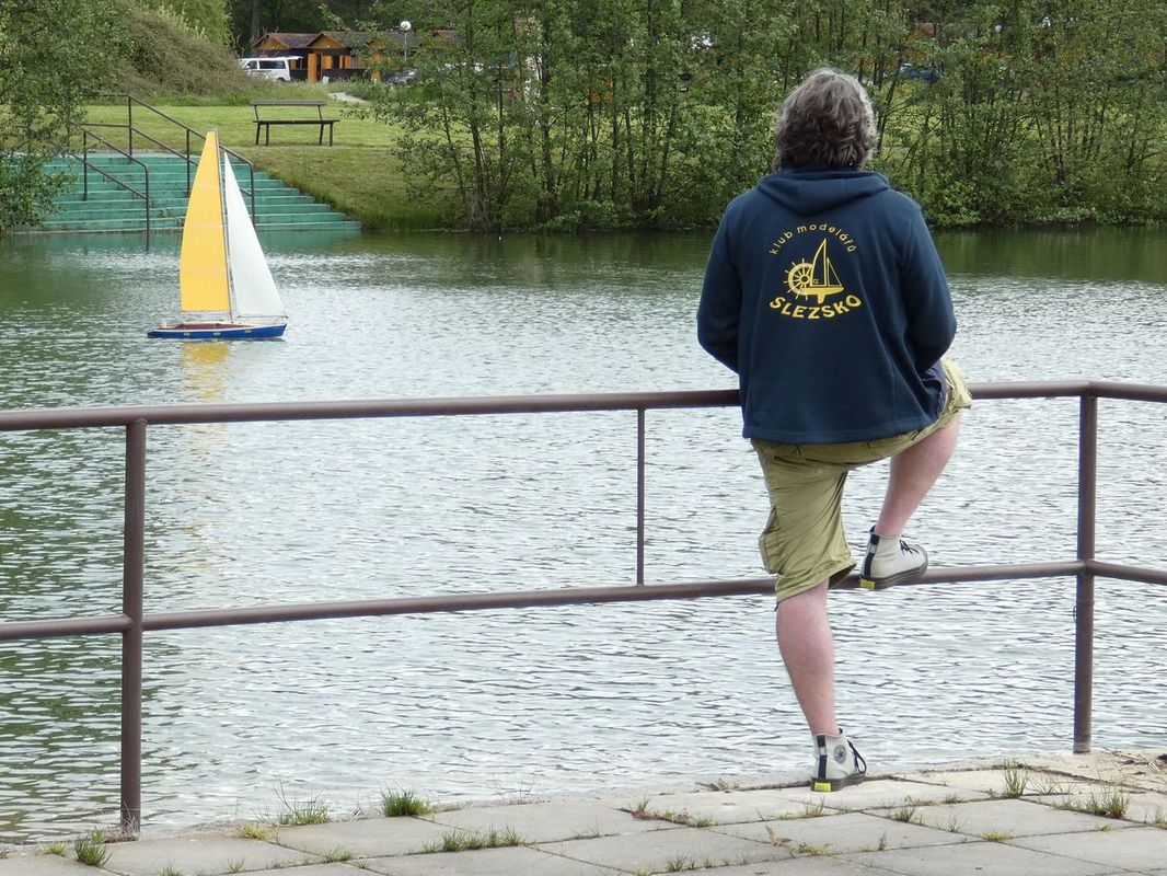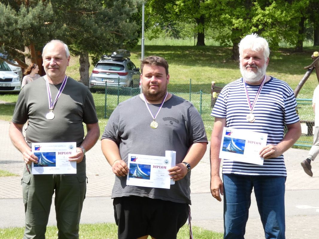 Ještě před jízdami se na nás přišel podívat Martin Bartička, který měl svou premiéru na Kristýně. Do Bakova přijel bez lodi, respektive bez pojízdné lodi. Místo toho přivezl ukázat, na čem nyní pracuje, a také nový trup. V průběhu dne se u našeho startoviště objevil také Petr Matějka, který s plachetnicí jezdil a okolo roku 2012 nás na nějakou dobu opustil, protože mu nezbýval na modelařinu čas. Ale už je nám jasné, že mu tenhle koníček chybí, protože by se chtěl v blízké budoucnosti vrátit mezi nás. Petře, těšíme se 😊.