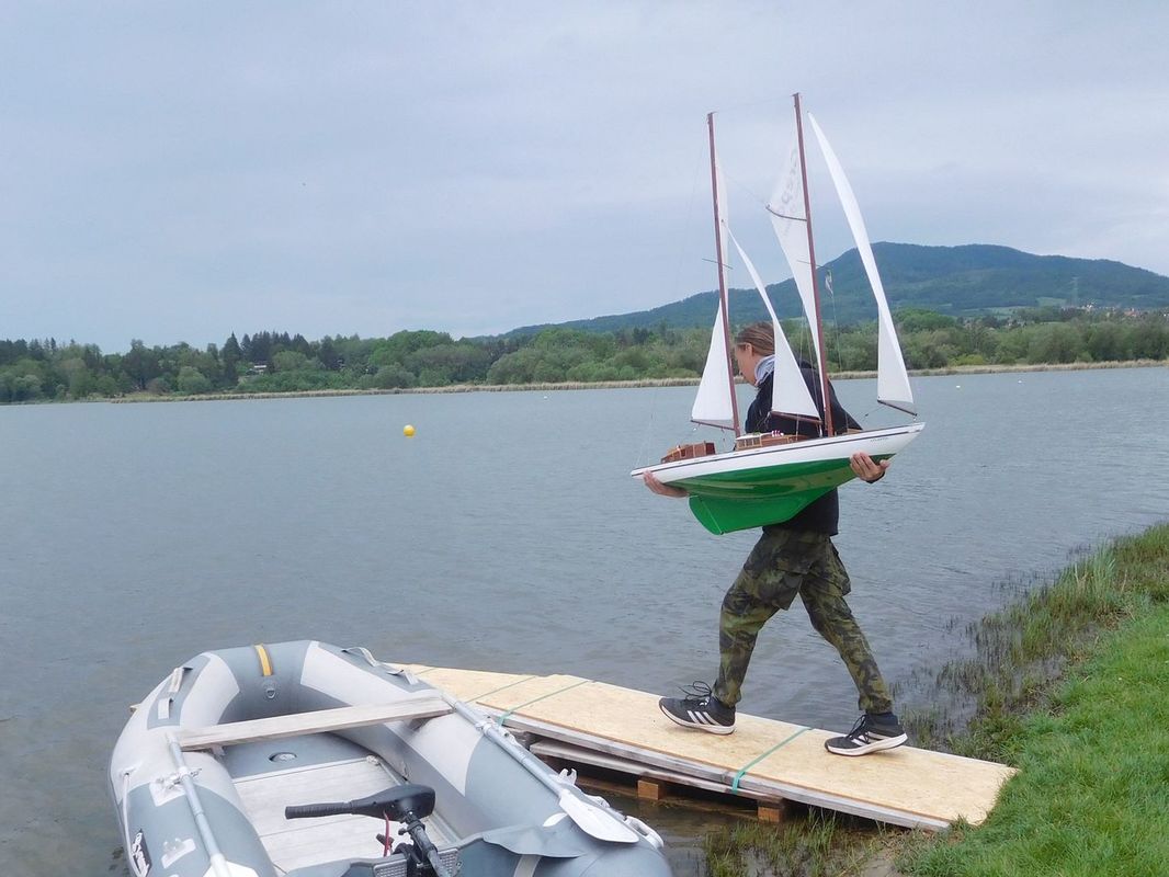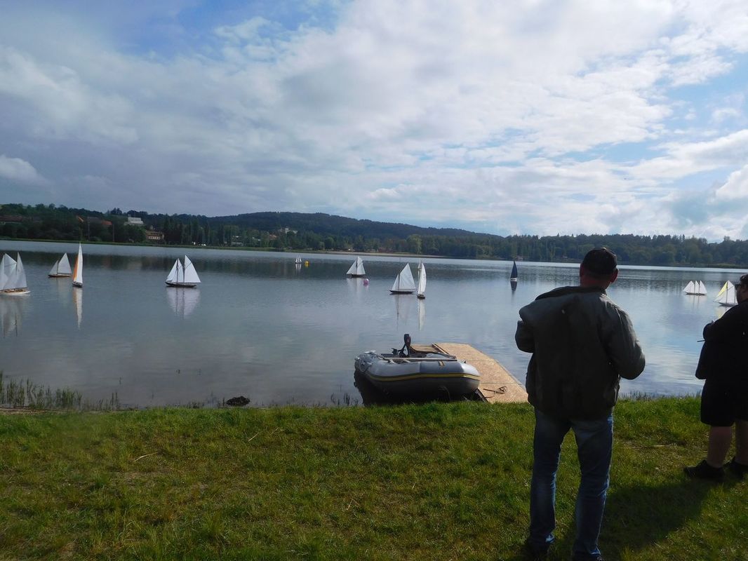 V pátek bylo 17. května, a to má narozeniny Bambinot a můj muž. Tentokrát slavili významných společných 115 let 😊. Ráno tedy začalo gratulacemi, ale oslavu jsme odložili až na večer. Po zahájení soutěže, na kterém se slova ujal Láďa Hanuška v roli sekretáře, proběhlo dobodování modelů, které nejezdily na Kristýně, a jízdy zahájily áčka. Obsazení této kategorie bylo dost slabé, protože chyběli kamarádi ze Slezska. Na trati tedy jezdili společně senioři s juniory. Počasí se postupně ještě zhoršovalo, fičel opravdu silný, nárazový vítr a mrholilo až pršelo. Přesto se v pátek povedlo odjet všechny jízdy kat. A a B. Déčka na vodě nebyla, protože se sešly pouze dva trimarany. Jejich dnem D byla sobota, kdy Standa přivezl třetí loď.