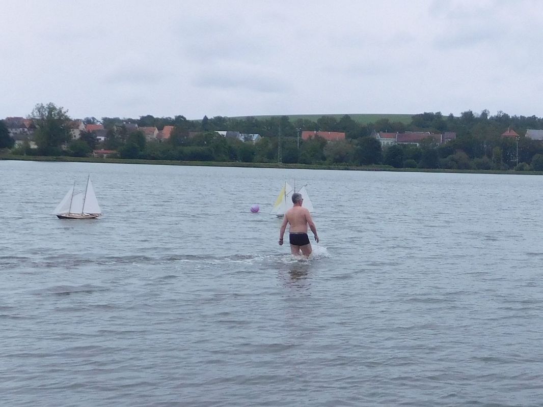 Při druhé jízdě kat. B jsme zažili dramatickou situaci, kdy Briliant Jardy Zemana zmizel pod hladinou. Přestože bylo pouhých cca 12 stupňů, Bambinot statečně odhodil až na trenky všechny své svršky a podle navigování několika soutěžících se snažil dostat na místo ponoru. Naštěstí jezero v místech, kde se loď potopila, nebylo hluboké, a tak se mu povedlo Brilianta najít a vytáhnout.