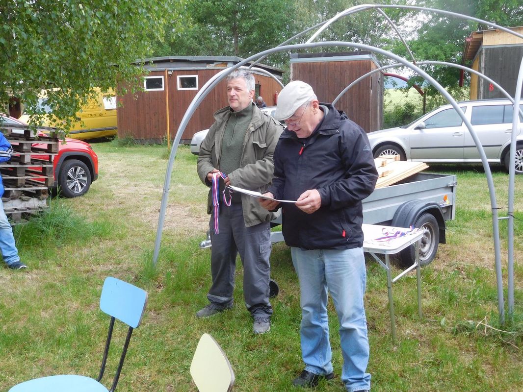 Myslím, že budu mluvit za všechny, když poděkuji Bambinotovi a Láďovi Hanuškovi za organizaci, zajištění kempu, obědů, spočítání výsledků. Naše díky patří také Irence, Vláďovi, Zdeňkovi, Otovi, Davidovi a Martině Jakešové, která i přes zánět šlach na ruce statečně obsluhovala stopky a zapisovala. Bez Vás bychom si nezajezdili. Ještě jednou dík 😊.