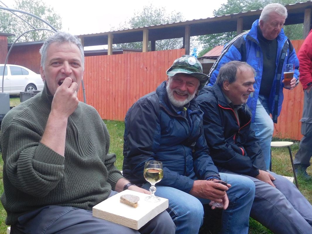 V kempu Obzor se zastavil čas. Vzpomněla jsem si na repliku z filmu „Jak dostat tatínka do polepšovny“ o pokojíku, ze kterého bude zrak přecházet 😊. Řekla bych, že sedmdesátá léta trochu cinknutá devadesátkami to vystihují. Jenže když je dobrá parta a fajn zábava, tak jde i pohodlí stranou… Navíc mělo to jednu výhodu. V kempu byla zastřešená „veranda“, která měla i boční stěny, takže tam nepršelo a ani tolik nefoukalo, a hlavně nebylo potřeba stavět stany. V průběhu čtvrtka jsme se tedy na tomto místě postupně skoro všichni sjeli a večer poseděli u pivka či vína. Taky jsme zjistili, že v kempu je něco jako bistro s fantastickou obsluhou a všechna jídla, která byla v nabídce, byla opravdu dobrá. A to ještě musím podotknout, že dámy byly opravdu kouzelnice a každý den nám vyčarovaly výborný oběd.