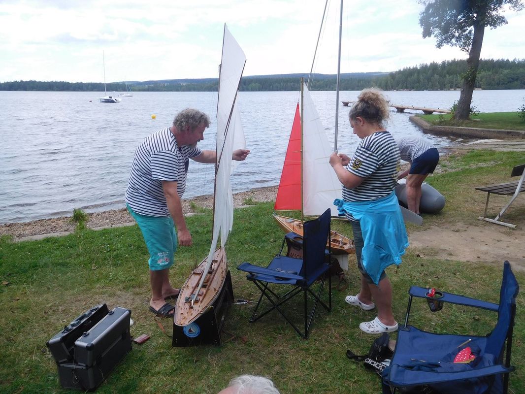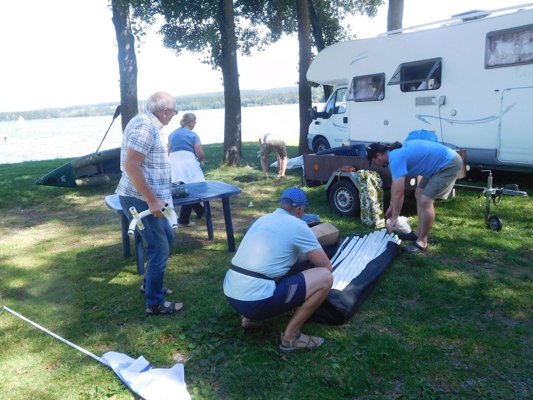 Pokračovali jsme v přípravách, já zkoumala tabulku pro výpočet výsledků a ujišťovala se o účasti Martiny a Mirky, abychom byly v pátek schopny zajistit startoviště, protože i Bambinot nahlásil svůj příjezd na pátek odpoledne. Ve čtvrtek jsme tedy naložili auto a vyrazili na jih. Pár minut po dvanácté jsme přijeli do Yacht clubu, kde už první účastníci zahájili stavbu velkého stanu, a to na stejném místě, jako vloni. Přiložili jsme také ruce k dílu a když jsme končili, na západě už bylo úplně černo. V rámci tréninku dali na vodu lodě Šurda a Pavel Macháček, ostatním se buď nechtělo, nebo si netroufli. Po nějaké době přišla bouřka, drobný déšť, vítr – prostě Dářko….. Do tohoto nečasu dojížděli další kamarádi a honem se všichni strojili. Přesto nám toto počasí náladu nezkazilo, bylo veselo i proto, že Milan Kroupa měl narozeniny, takže jsme mu postupně popřáli a on vyčaroval výborné chlebíčky. Milan Dvořák nám přivezl ukázat svou bronzovou medaili z Mistrovství světa v maďarském Szagrádu. Čtvrteční odpoledne i večer jsme prožili v pohodové a přátelské atmosféře.
