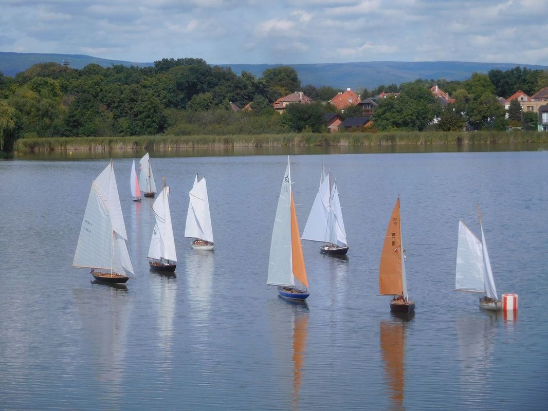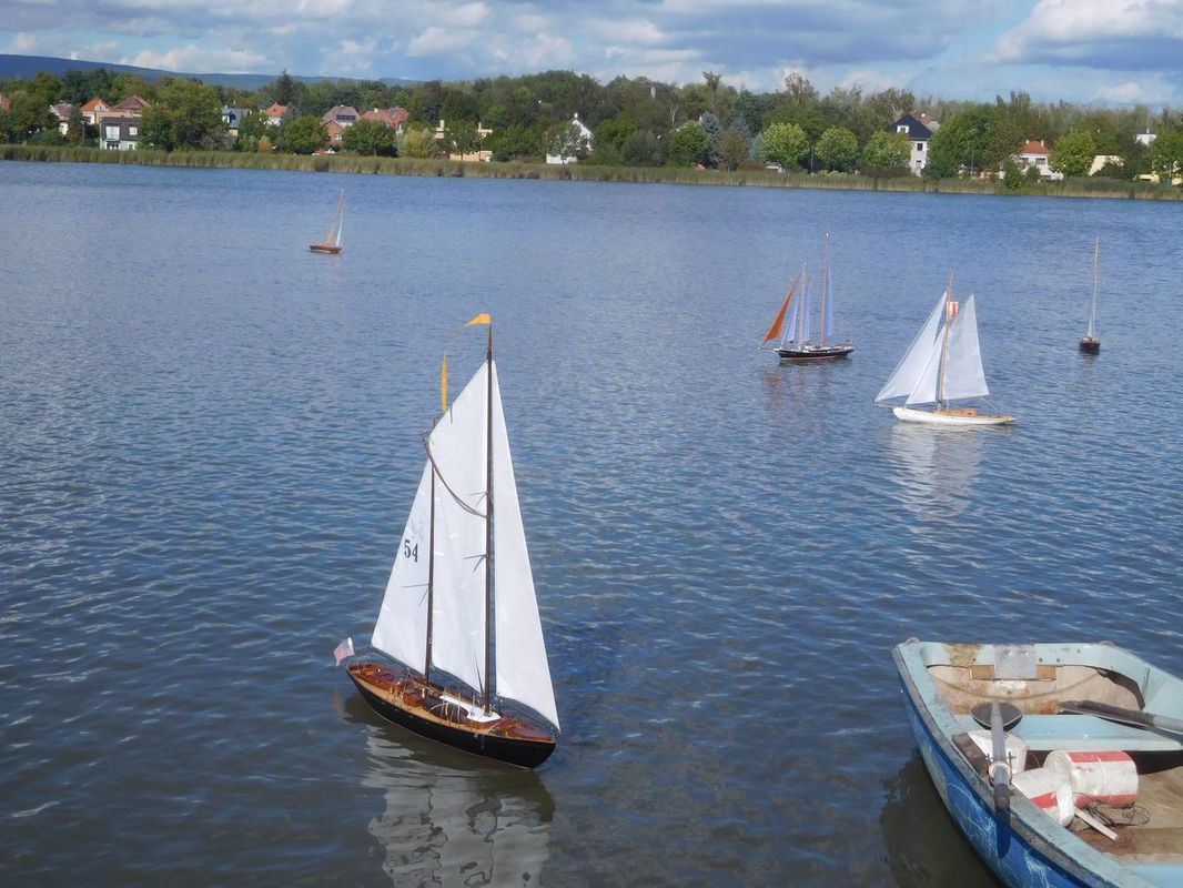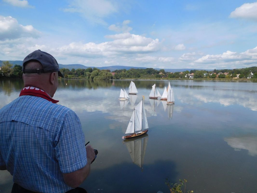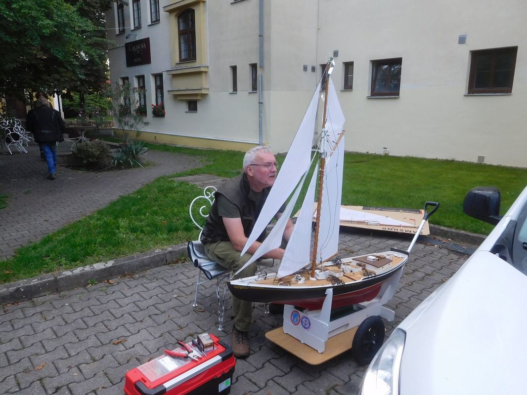 Podle propozic měly plachetnice jízdy už v pátek od 10 hodin a trať byla postavena přímo proti hotelu Casanova, kde jsme skoro všichni bydleli. V pátek ráno jsme se začali scházet na hotelovém parkovišti, kde se objevili také Irenka Rosenbergová a Vláďa Bláha, a kde si všichni chystali modely. Účast byla slabá, v kat. seniorů 3 lodi NSS A, 6 lodí NSS B, v kat. juniorů 3 lodi NSS A (ti ale v pátek nejezdili). A aby se to nepletlo, počasí taky nebylo nic moc. Bylo zataženo, chvílemi drobně pršelo, a hlavně hodně mizerně foukalo. Proto jsme první dvě jízdy jeli na malý trojúhelník a samozřejmě všechny lodě dohromady. Po přestávce a oficiálním zahájení jsme se opět sešli u našeho startoviště, kde mezitím Láďa Douša s Milanem Dvořákem zmenšili trať. Odpoledne se malinko vyčasilo a také trochu fouklo. V plánu byly další dvě jízdy – 3. jízda z páté soutěže a 1. jízda ze šesté soutěže, což se povedlo. Tím jsme získali malý náskok a dali v sobotu prostor juniorům, aby mohli odjet 3 jízdy páté soutěže.