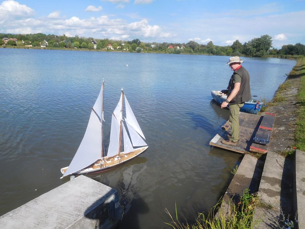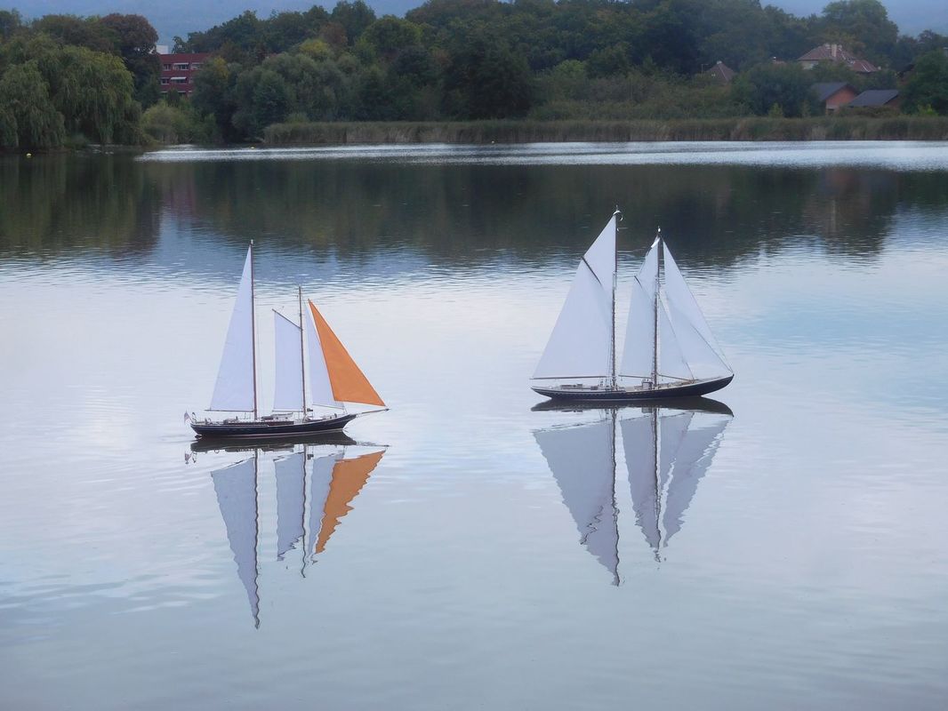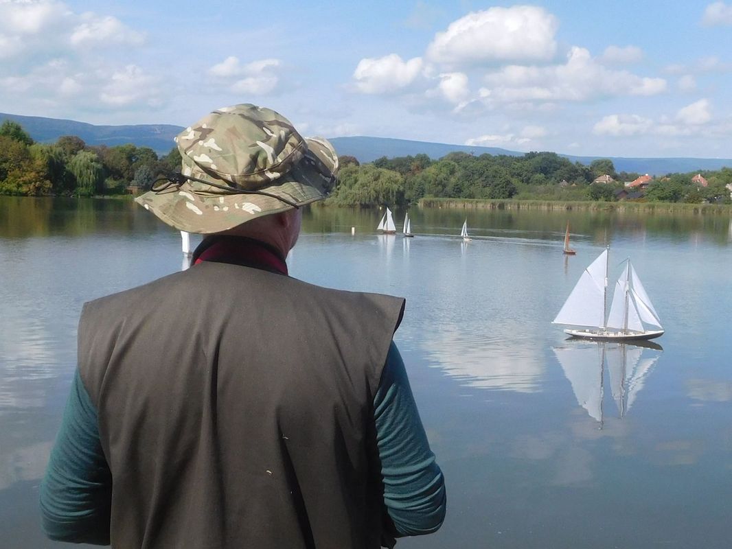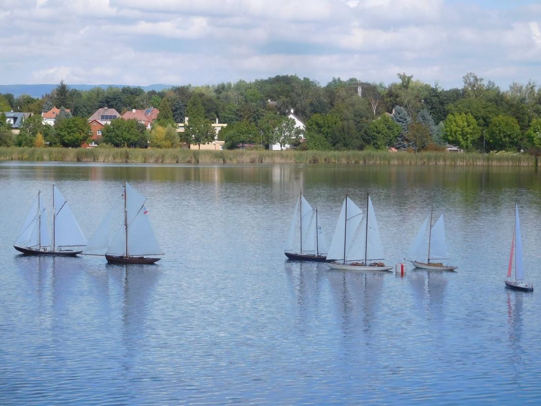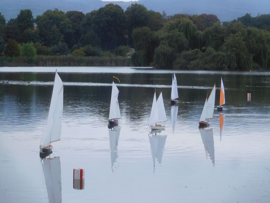 Podle propozic měly plachetnice jízdy už v pátek od 10 hodin a trať byla postavena přímo proti hotelu Casanova, kde jsme skoro všichni bydleli. V pátek ráno jsme se začali scházet na hotelovém parkovišti, kde se objevili také Irenka Rosenbergová a Vláďa Bláha, a kde si všichni chystali modely. Účast byla slabá, v kat. seniorů 3 lodi NSS A, 6 lodí NSS B, v kat. juniorů 3 lodi NSS A (ti ale v pátek nejezdili). A aby se to nepletlo, počasí taky nebylo nic moc. Bylo zataženo, chvílemi drobně pršelo, a hlavně hodně mizerně foukalo. Proto jsme první dvě jízdy jeli na malý trojúhelník a samozřejmě všechny lodě dohromady. Po přestávce a oficiálním zahájení jsme se opět sešli u našeho startoviště, kde mezitím Láďa Douša s Milanem Dvořákem zmenšili trať. Odpoledne se malinko vyčasilo a také trochu fouklo. V plánu byly další dvě jízdy – 3. jízda z páté soutěže a 1. jízda ze šesté soutěže, což se povedlo. Tím jsme získali malý náskok a dali v sobotu prostor juniorům, aby mohli odjet 3 jízdy páté soutěže.