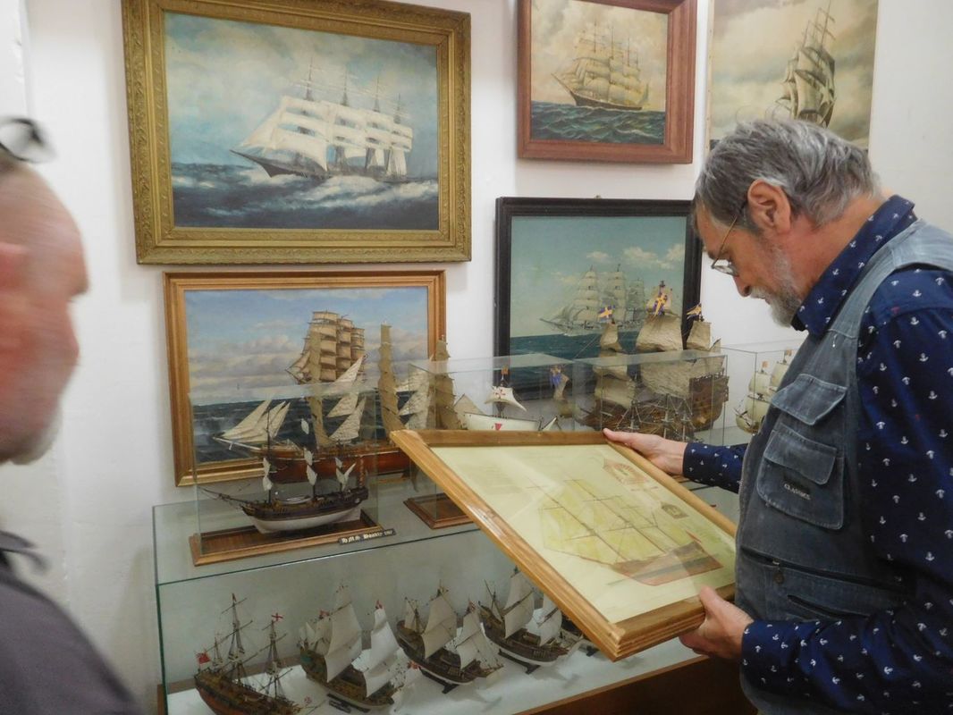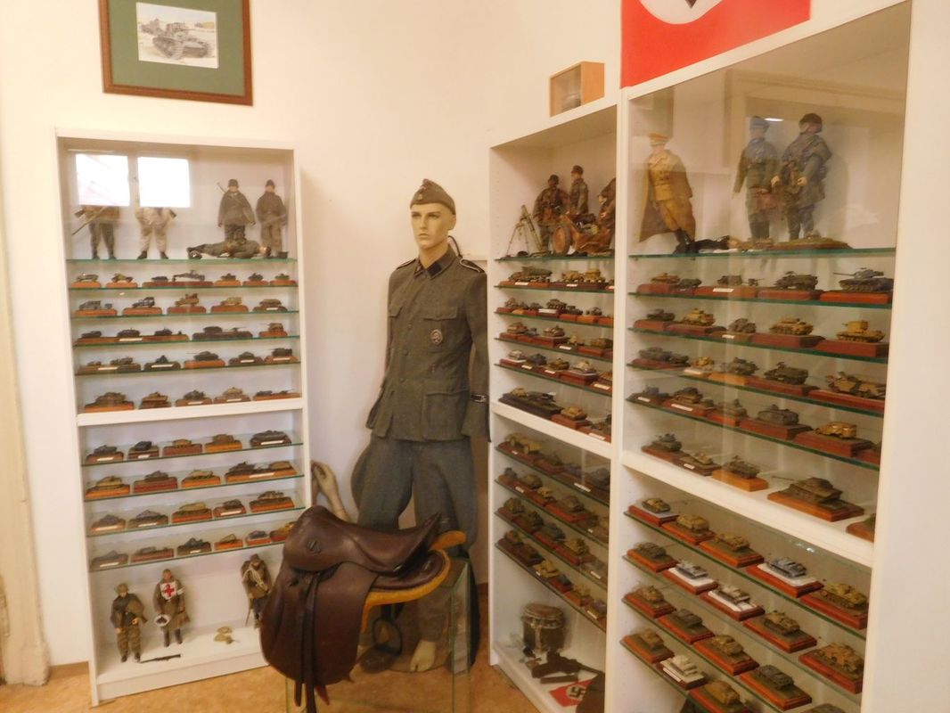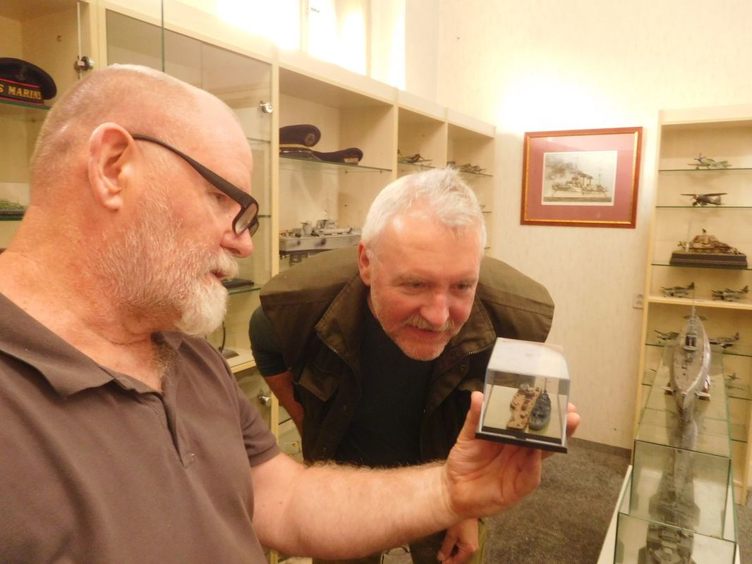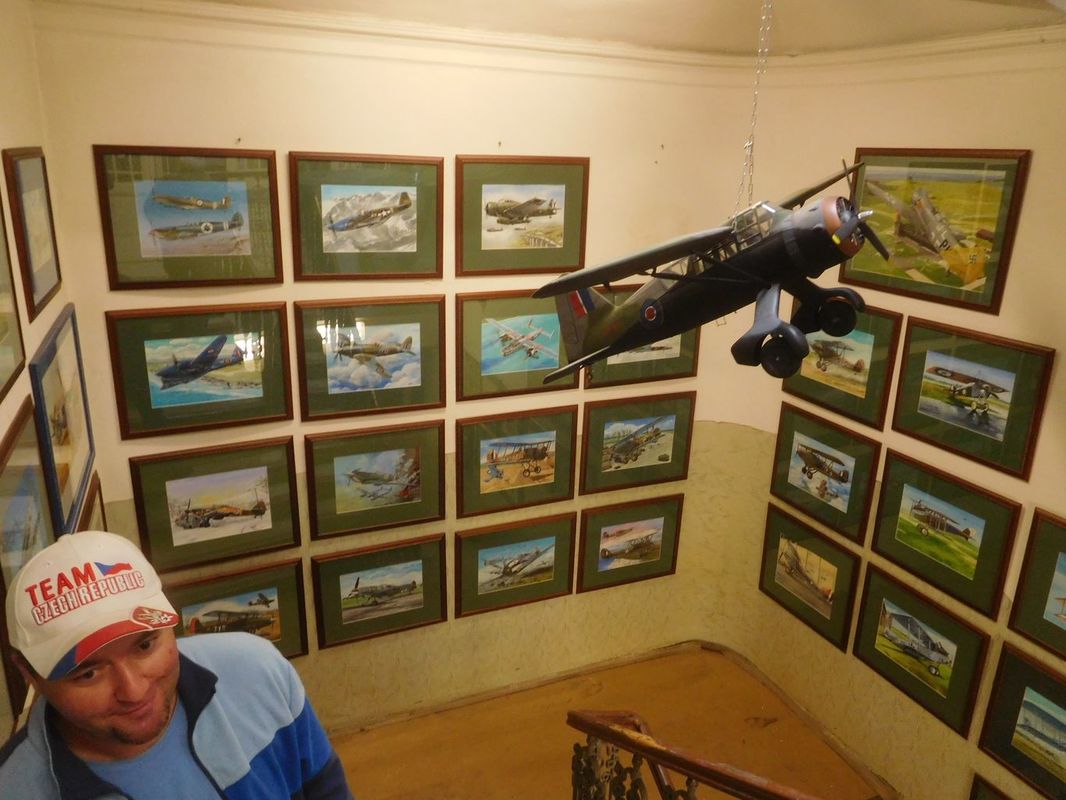 A teď malá vsuvka. V Duchcově najít restauraci, kde vaří, není až tak jednoduché. Mají tam bistro, ale to brzo zavírá, a jídlo je tam tak trochu jako v závodce. Mají tam pizzerii, kebab nebo gyros, ale tam si nesednete, dají Vám pizzu do krabice, nebo kebab či gyros do ruky 😊. Ale my si vzpomněli, že za dávných dob jsme byli ještě s Hasičem v baru Victoria. Bar jsme navštívili hned ve čtvrtek díky Pavlu Macháčkovi a ten nám vylíčil, že si tam dal výborné vepřové koleno. Vepřové koleno si dal i Petr Hlava a také na něj pěl chválu. Prostě do toho baru chodili na jídlo a na pivko snad všichni modeláři. V pátek se s námi dal do hovoru tamější kuchař a vlastně se z něj vyklubal vášnivý sběratel všeho možného. Dozvěděli jsme se, že má v Duchcově soukromé muzeum. Na dotaz Vráti Emlera, jestli je možná prohlídka, odpověděl, že je to na domluvě. A tak byla dohodnuta návštěva muzea na sobotu odpoledne. My v sobotu nejdřív vyrazili na to chválené koleno. Na jedno koleno, protože takoví jedlíci nejsme, abychom snědli každý celou porci. A sotva jsme dojedli, už tam byl pan kuchař, že tedy jede do muzea, kde už čekali někteří modeláři. Pepa a Pavel Macháček se svezli s ním. Vrátili se asi po hodině se spoustou dojmů. Ostatně uvidíte na fotkách, co vše bylo k vidění….