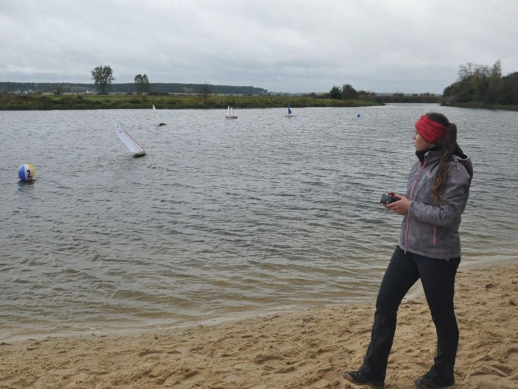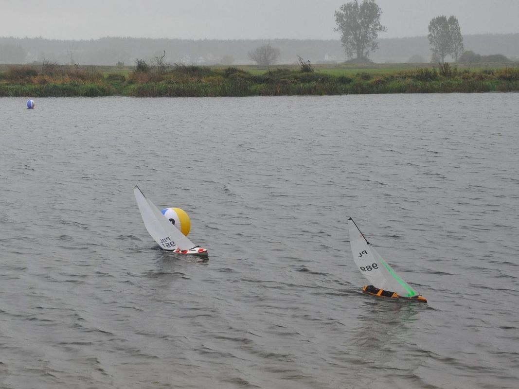 Odjezd tedy již v tradiční 2:00, byť páteční večerní telefonát do Pinczowa vedl k zahájení až v 10:00. Cesta byla tentokrát zpestřena skoro celonočním deštěm. Předpověď slibovala drobný déšť i během dne, ale i s větrem 5-7 m/s, na který se těšil Tomáš Jakeš. Vydrželo pršet skutečně až do rána, takže v lesích před Wolbromem bylo jen občas nějaké auto s houbaři zabalenými do pláštěnek, oproti jindy plnému lesu. V Pinczově skoro nepršelo, ale postupně během dopoledne se mžení proměnilo na slabý déšť. Vítr skutečně hodně foukal, okolo 5 m/s trvale s poryvy až k 7 m/s. Na krátkém zahájení v 10 h byly představeny zde tradiční skupinky na rozjížďky. Nejprve NSS 650 (obdoba RG 65, ale jezdící na více kol, v tomto případě vždy cca půlhodiny trvající), konkrétně dvě rozjížďky po sobě a pak tedy cca v 11 h NSS open – tedy NSS-A, NSS-B a samostatně vyhodnocovaný Sun Fish pohár (NSS-C). V NSS 650 se sešlo asi 8 seniorů (šlo to celkem špatně spočítat, protože v silném větru většina nevydržela) a 3 junioři. Měli zmenšenou trať cca rovnostranný trojúhelník s jen jednou stranou proti větru, kde museli křižovat. Ti méně zdatnější se v silném větru i několikrát posunuli vzad ke startovní bóji, než se přiblížili k první bóji a otočení se dále po větru. V NSS open první jízdu vzdali dva přítomní modeláři se Sun Fishem, takže nastoupilo 8 modelářů, z toho jen jeden z Polska – Marek Stala a jedna česká juniorka Veronika Kotlárová.