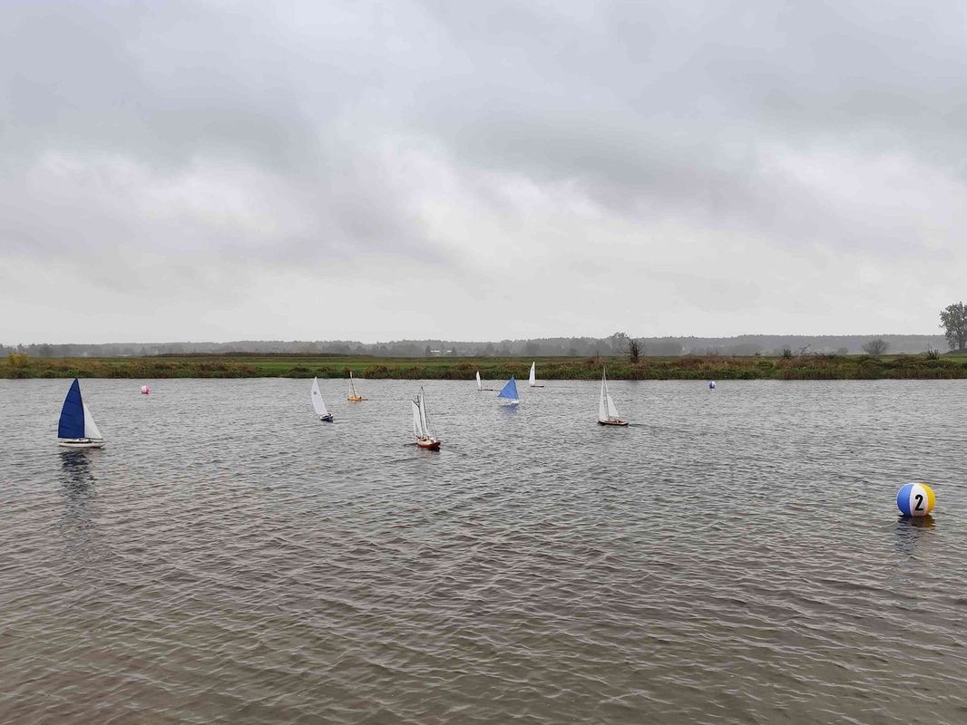 Na nás čekal trochu rozpláclý kosočtverec umístěný na slepé rameno řeky Nidy. Přičemž startovní i vrcholová bójka byly poměrně blízko břehu – u startovní hrozilo uvíznutí na písčité mělčině, u vrcholové zejména při nečekaném poryvu při zadním větru vybočení do rákosí na druhém břehu. Tam ale nebylo jen rákosí, byl jsem tam pro jednu NSS 650, podél břehu v šíři asi 2 m rostly lekníny, do kterých se plachetnice mohla zamotat ještě dříve než do rákosí. Jak je zde zvykem, závodníci se při průjezdech hlásí číslem, 7 Čechů většinou česky, a rozhodčí pobavil Marek Stala, který se přidal k českému hlášení a pravidelně hlásil česky osm, místo polského osiem. Během první rozjížďky vítr ani na chvilku nezmírnil, takže vyhlášených 7 kol (z důvodu větru se počítal počet kol jen ze 40 minut) měl Tomáš za necelých 25 minut. V podobném tempu jen s jedním předjetím Tomášem Jakešem byl René Walenta a za ním pak ještě Franta Chmelka. Marek Stala pak ještě s jedním předjetím navíc. Ostatní jsme bojovali s poleháváním na vodě, doplňováním vody do trupu a podobně. Já jsem dokázal udržet Lonu v relativně vzpřímené poloze jen při ostrém stoupání proti větru, kdy většina síly větru sklouzla po plachtách a jen minimum zůstalo na pohyb vpřed. Při vypadnutí z tohoto ideálu však vítr plachetnicí s přitaženými genami smýkl tak, že plachetnice ležela hned na vodě a většinou byla odhozena zpět po větru o pár metrů. Když dokončily první čtyři plachetnice, měl jsem odjeté jen tři nebo čtyři kola. Zbylí tři Pavel Strenk, Petra a Veronika Kotlárová už boj také vzdali, takže jsem nezdržoval dojížděním v naději, že další jízda bude v trochu slabším větru. Pavel odstoupil se zlomeným ráhnem vratiplachty, Petra se zaplaveným nefunkčním navijákem a Veronika s příliš mnoho vody v podpalubí. Předpověď počasí slibovala nakonec spíše zhoršení, takže se hned jela další jízda NSS open. Začala v podobném duchu se silným větrem, první tři byli natolik rychlí (už nás nenastoupilo osm), že se vyhlásilo osm kol. Po asi deseti minutách se vítr trochu zklidnil na 3-5 m/s, takže se alespoň chvílemi dalo rozumně plachtit. Po 30 minutách dokončil osm kol Tomáš a vítr opět zesílil. Do té doby jsem i já z šesti kol měl asi čtyři relativně poklidné. Předposlední, a nakonec i část posledního byl opět boj s poleháváním na vodě. V posledním kole při opakovaném přibližování k první bójce, vždy po propadnutí při pokusech o obrat, jsem si všiml, že mám nějak moc zanořenou záď plachetnice. Naštěstí jsem už byl po obratu u zadního břehu a křižoval směrem k sobě. No nakonec bylo rameno řeky přeci jen široké a asi 10 m od břehu se začala zanořovat vratiplachta a plachetnice zastavila. To už jsem se začal svlékat a vyrazil jsem pro ni. Když jsem k ní doplaval (teplota vody i vzduchu 12-14 °C, vítr okolo 6 m/s), už zbývala nad vodou jen špička. Takto daleko od břehu byla hloubka okolo 2 m, takže jsem asi 4m musel s plachetnicí plavat, teprve potom šla poponést ve vodě ke břehu a tam vylít vodu z trupu. Cestou do vody, ani později na břehu mi zima nebyla, jen v prvním okamžiku vynoření a ofouknutí větrem. Takže jsem si letos prodloužil koupací sezónu ve středoevropských venkovních vodách – od 23.5. (Bakov) do 11.10.2025, pokud tedy nepočítám pobyt v kalhotách ve vodě do pasu na Kristýně 4.5.2025.