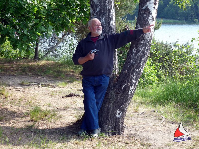 Na druhé straně rybníka probíhaly závody dálkových plavců a od motoráku pořadatelů čas od času dorazily velké vlny, které naše model pěkně pohoupaly. Nevím jak to bylo u ostatních kategorií, ale přistávání v doku mohlo být dramatické. Také jsme měli zvukový přehled o výsledcích a dění v závodu – například Jaroslav Pešek si vedl velmi dobře. Proto asi nebyl s námi. Z druhé strany také přiveslovala na plováku VIP návštěva – známý jachtař David Křížek, který je členem místního klubu jachtařů.