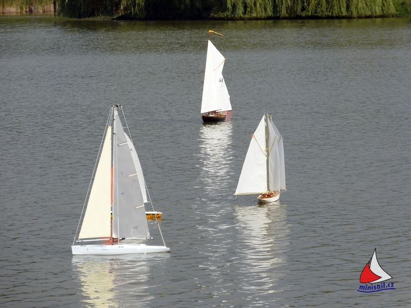 Přilákala, ovšem žádný dramatický nárůst se nekonal. Celkově se za celý víkend u vody ukázalo 10 plachetnic NSS-A a 2 plachetnice NSS-B. V sobotu nám bylo přáno absolvovat 4 jízdy (mně sice jen 3, protože jsem se zapomněl u startoviště parníků, ale to už k mé účasti na podobných akcích, kde je více druhů modelů k vidění, zkrátka patří), přičemž chvílemi foukal nepříjemný nárazový vítr, jinak byly větrné podmínky příznivé. Poněkud horší to bylo během nedělní regaty, kdy vypuštěné modely s dopomocí boží obepluly předepsaná dvě kola čistě díky své setrvačnosti, neboť nemohla být řeč ani o vánku.