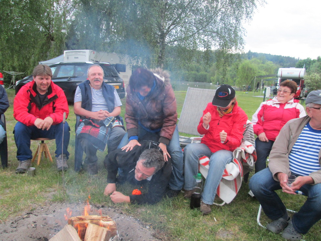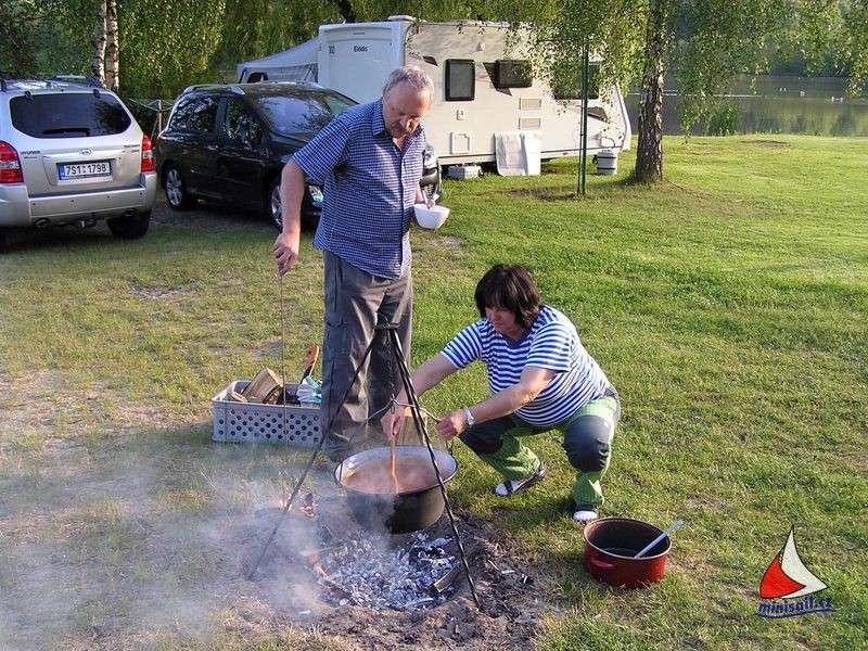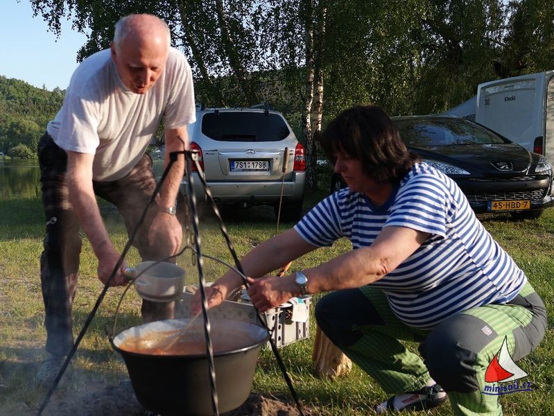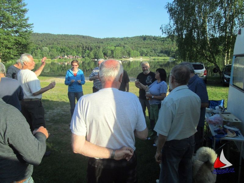 Ve čtvrtek večer se chystala malá oslava narozenin Jirky Kreisela. Všichni jsme si s Jirkou připili na jeho zdraví a předali mu drobné dárky. Jirkova žena Irena přivezla skvělý hovězí guláš. Miloš coby odborník roztopil ohniště, Irča na něm ve velkém kotlíku guláš dovařila a hned se na tuto dobrotu utvořila fronta s miskami. Všichni se olizovali až za ušima. Zábava pak pokračovala ve velkém party stanu, jak kdo vydržel.