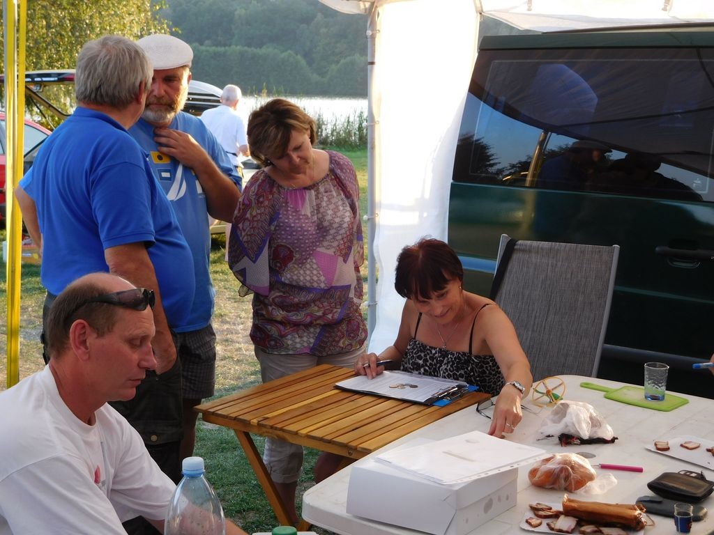 Sobotní den nezačal deštěm, jak se očekávalo a to mnohé znervózňovalo, kdy už to příjde. Doba internetová přináší meteoradary a Aladiny a tak bylo každou chvíli jasné, že kolem prší, jen nad Jinolicemi po nebi pluly zachmuřené mraky. Tím, že jsem napsal, že mraky pluly, je jasné, že docela foukalo a to hned od brzkého rána. Tak jsme mohli začít jízdy 5. seriálovky dříve než v naplánovaný čas. Po pátečních pomalých taktických jízdách si v sobotu užili i kapitáni lodí, které prostě potřebují vítr. Jízdy se tak odjely ve svižném tempu a i přes půlhodinový déšť se na závěr podařilo zařadit i nedojetou jízdu NSS-B ze soutěže čtvrté. Po dohodě s kapitány postýlek, jak se říká vícetrupým NSS-D, se jejich třetí jízda ze čtvrté soutěže anulovala, aby bylo možno zpracovat kompletní výsledky obou seriálovek. Slavnostní vyhlášení pak proběhlo ve stanu v osm večer. Zůstávalo jen dopočítat finální výsledky seriálu a odjet závěrečnou regatu.